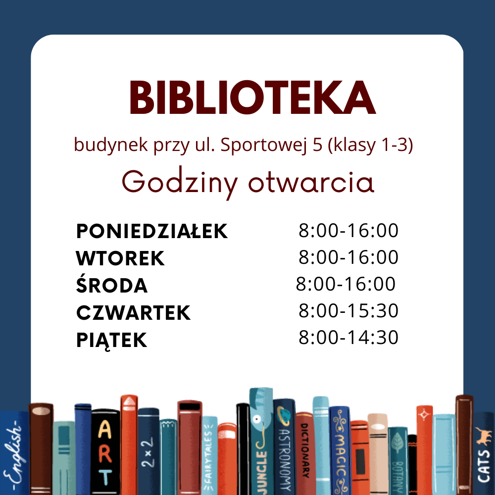 W celu ułatwienia uczniom klas I-III dostępu do księgozbioru, zaadaptowane zostało pomieszczenie w nowym budynku szkoły. Stanowisko nauczyciela bibliotekarza w części I-III zajmuje p. Joanna Wroniewicz. Natomiast w klasach IV-VI i gimnazjum p. Agata Zdankowska.