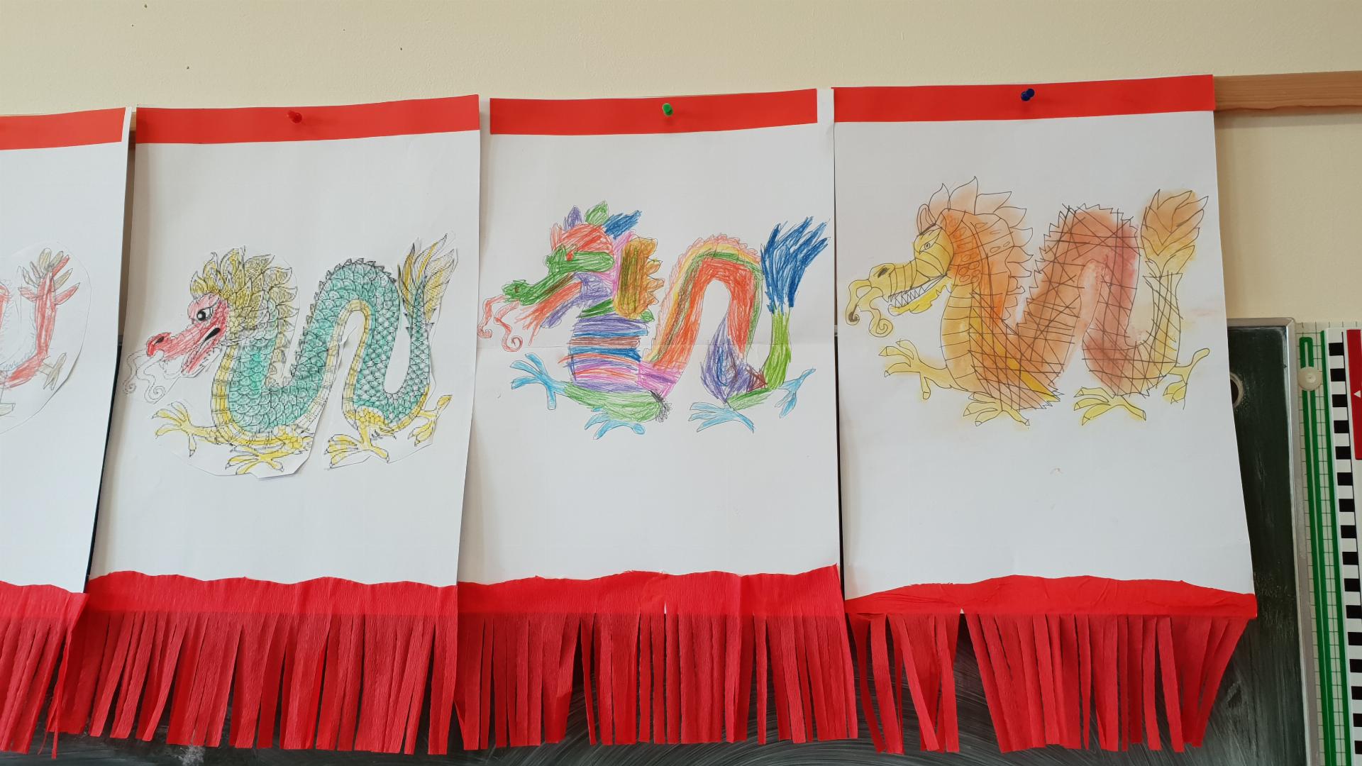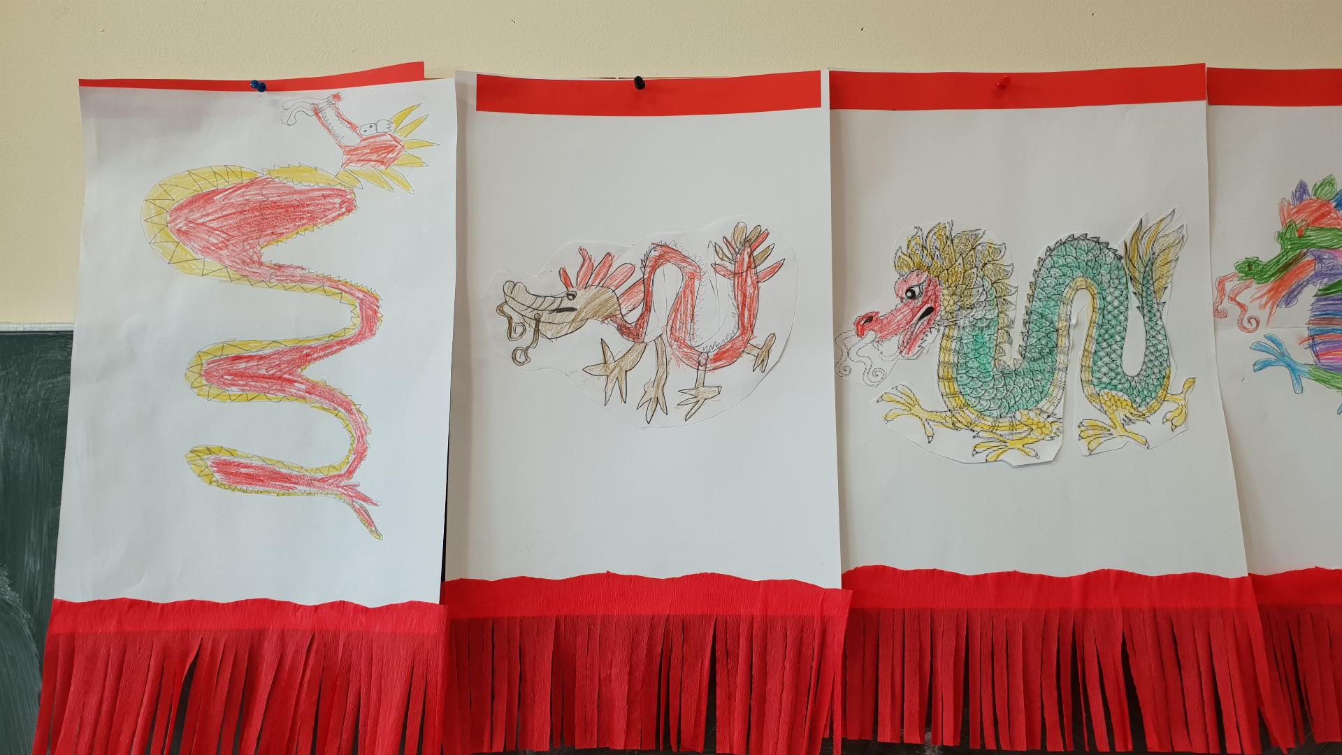 Chińskie smoki zagościły na gazetkach ściennych i ekspozycjach w holu szkoły. Niech szczęście zawsze nam sprzyja.