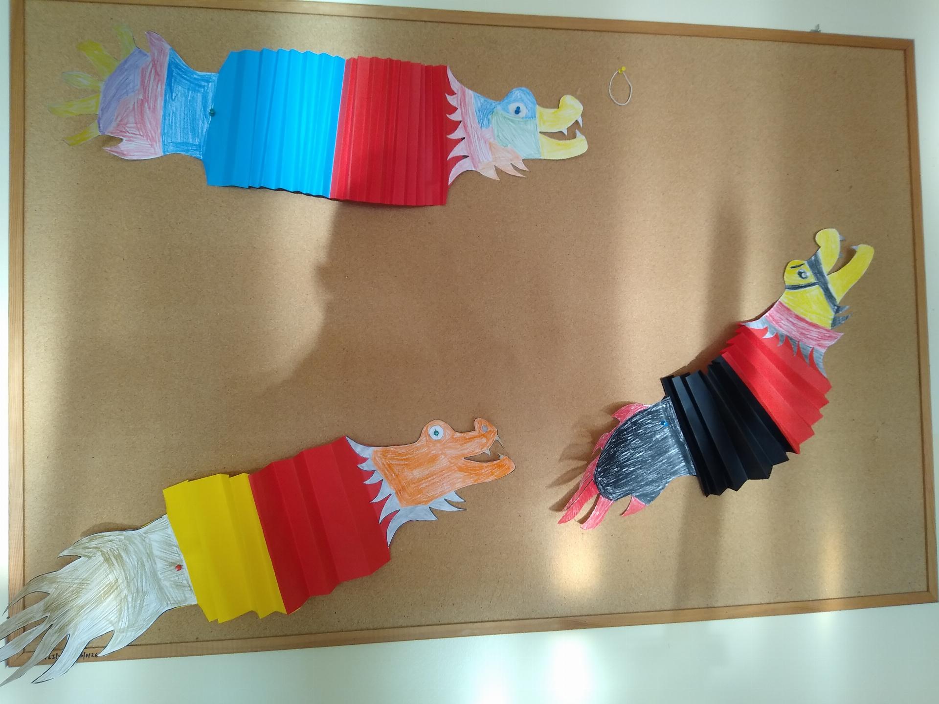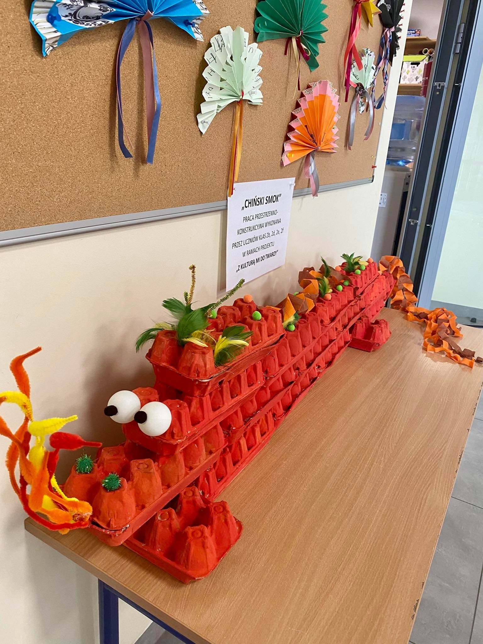 Smok, zazwyczaj przedstawiany jako długie, wężopodobne stworzenie z wielkimi szponami, jest od dawna silnie zakorzenionym w wierzeniach, folklorze i sztuce Chin symbolem mocy przynoszącej szczęście. Warto mieć go wśród nas, dlatego stworzyliśmy bardzo różnorodne, ciekawe i oryginalne wizerunki smoka, m.in..: rysunki, prace przestrzenne (także z eko-materiałów tj. wytłoczki po jajkach, rolki po papierze), smoki-układanki z klocków i słomek kreatywnych i wiele innych.