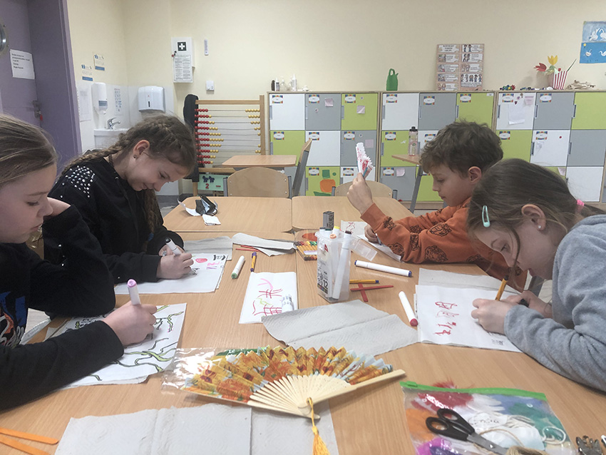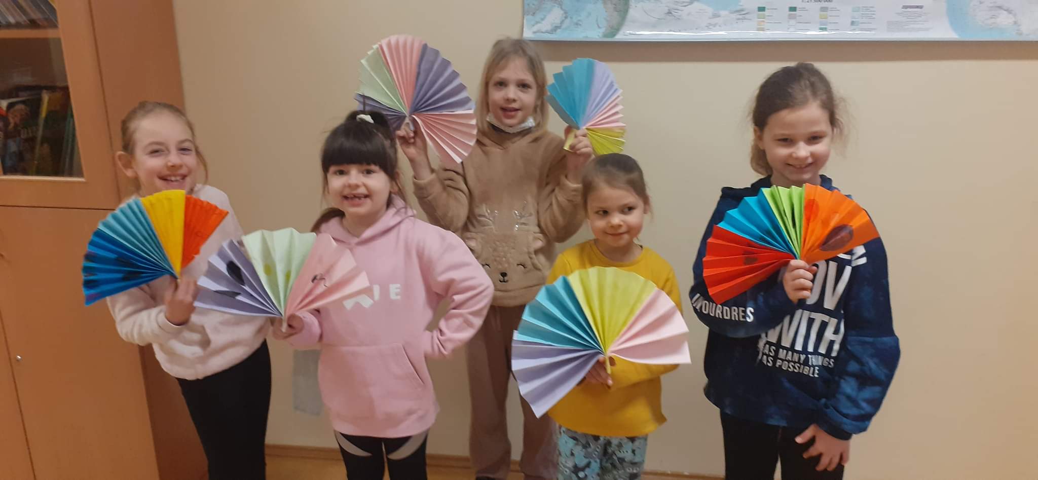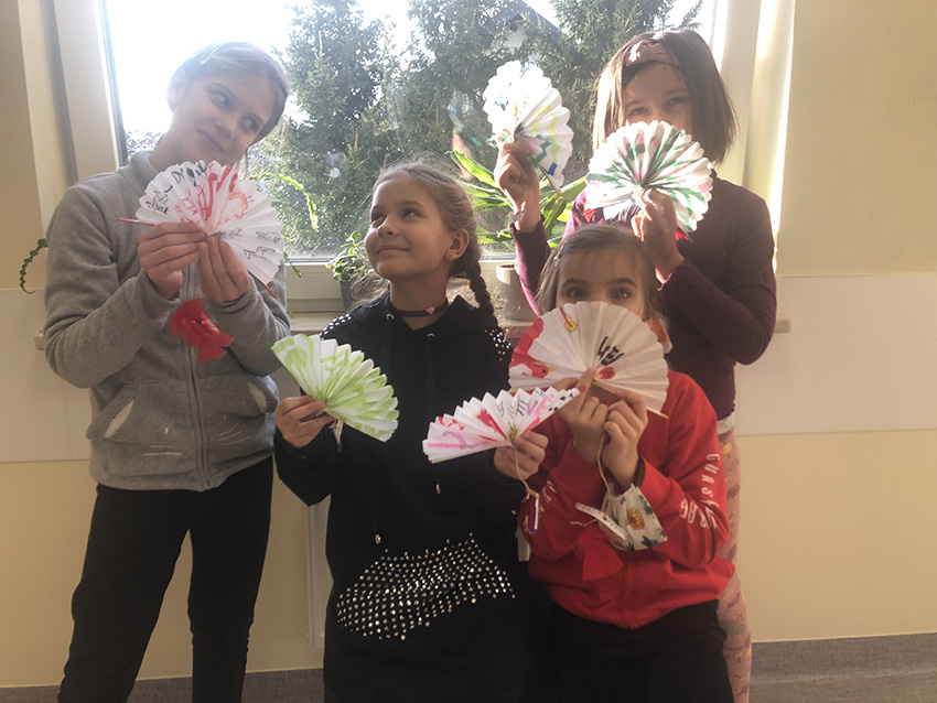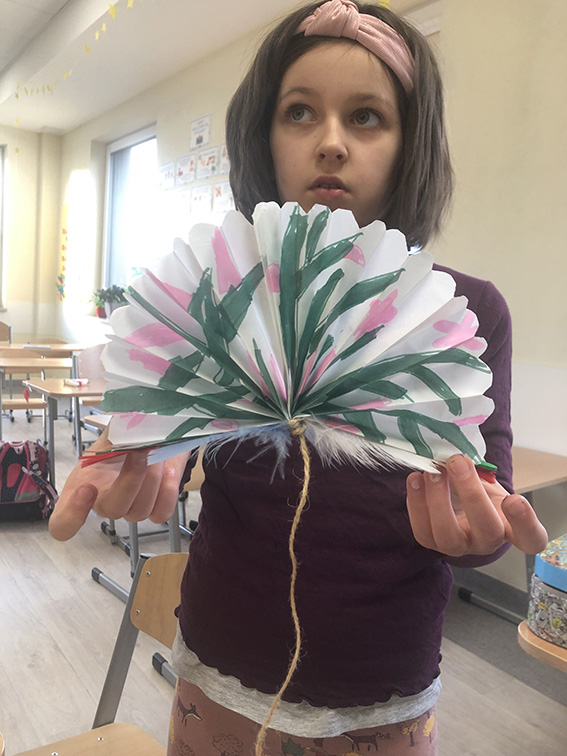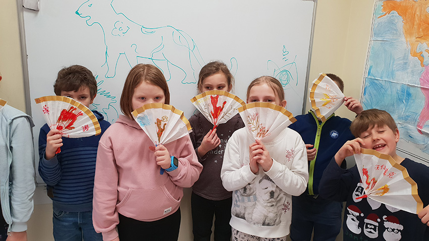 W ramach projektu "Z kulturą mi do twarzy" Moduł IV Kultury Świata nasi uczniowie z klas 2 zainspirowani kulturą Chin wykonali z papierów o różnej strukturze piękne, papierowe wachlarze. Poznali krok po kroku wszystkie etapy tworzenia wachlarza - składania papieru, wycinania i rysowania chińskich ornamentów kwiatowych, symboli i znaków zodiaku oraz dodawania ozdobnych paseczków i tasiemek. Uczniowie klas pierwszych z zainteresowaniem obejrzeli film pt.: “Odkrywanie Chin - Przepiękny taniec z wachlarzami i wstęgami. - link....”. Zainspirowani nagraniem chętnie przystąpili do pracy. Z kolorowych kart technicznych, włóczki i pasków ozdobnych tapet wykonaliśmy barwne wachlarze. Dziurkaczami ozdobnymi zrobiliśmy dodatkowe ozdoby.