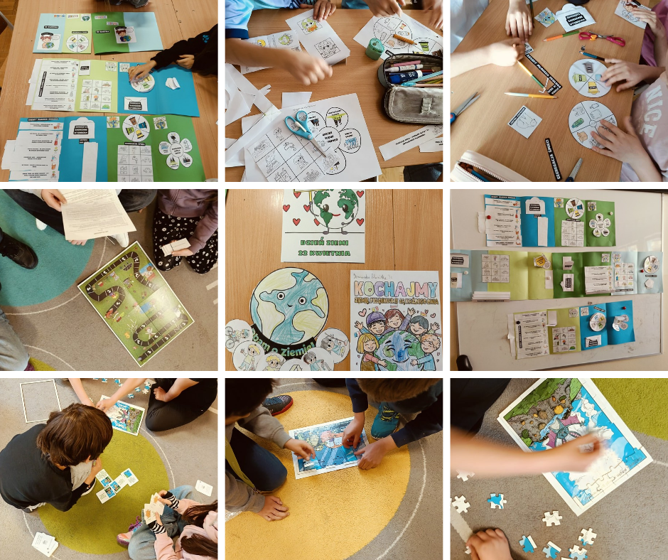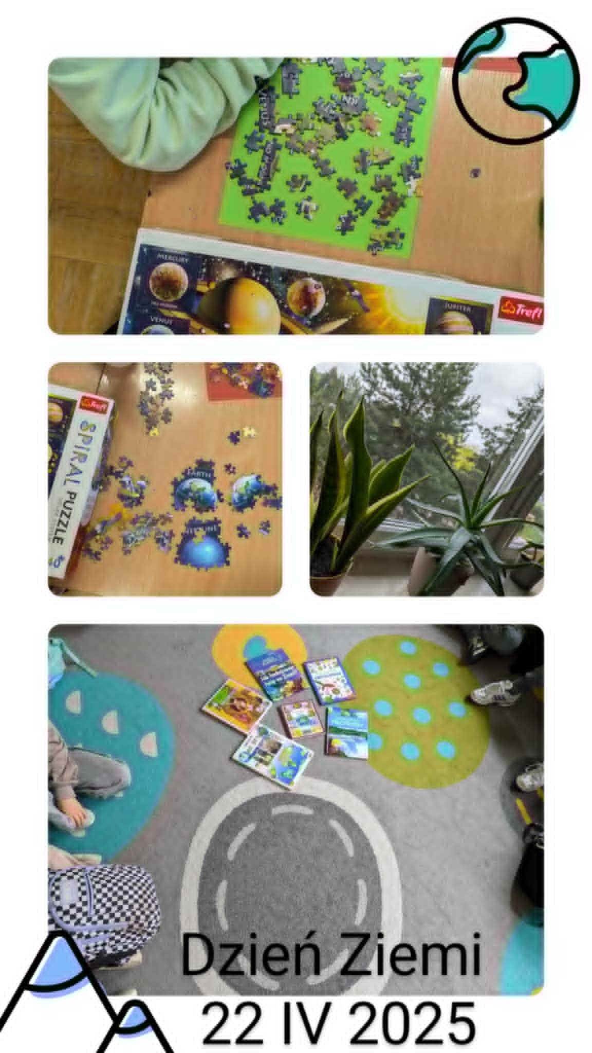 W ramach obchodów w naszej szkole Międzynarodowego Dnia Ziemi 22 IV 2025 w kl. III czytaliśmy literaturę dotyczącą tej tematyki oraz tematyki ekologii ważnej dla naszej planety, układaliśmy puzzle, graliśmy w memory oraz planszówkę. Stworzyliśmy lapbooka oraz prace plastyczne, również w ramach autorskiego programu ,,Mandala’’. Pielęgnowaliśmy przyniesione z domu kwiaty w ramach akcji ,Zielona Świetlica’’ w sali N4 i N117 oraz przygotowaliśmy ażurowe osłonki na doniczki.