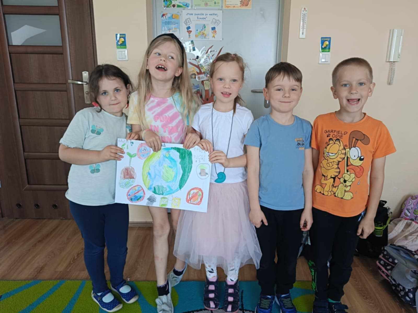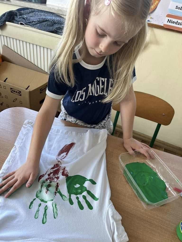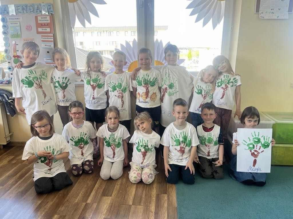 23 kwietnia 6-latki świętowały Dzień Ziemi w wyjątkowy sposób – z ogromnym zaangażowaniem wykonały różnorodne prace plastyczne, tworzyły eko - koszulki, przechodziły ścieżką sensoryczną oraz degustowały galaretkę w kolorze zielonym. Podczas zajęć dowiedziały się jak ważna jest troska o naszą planetę, przy okazji mogły wyrazić swoją kreatywność i stworzyć coś naprawdę wyjątkowego.