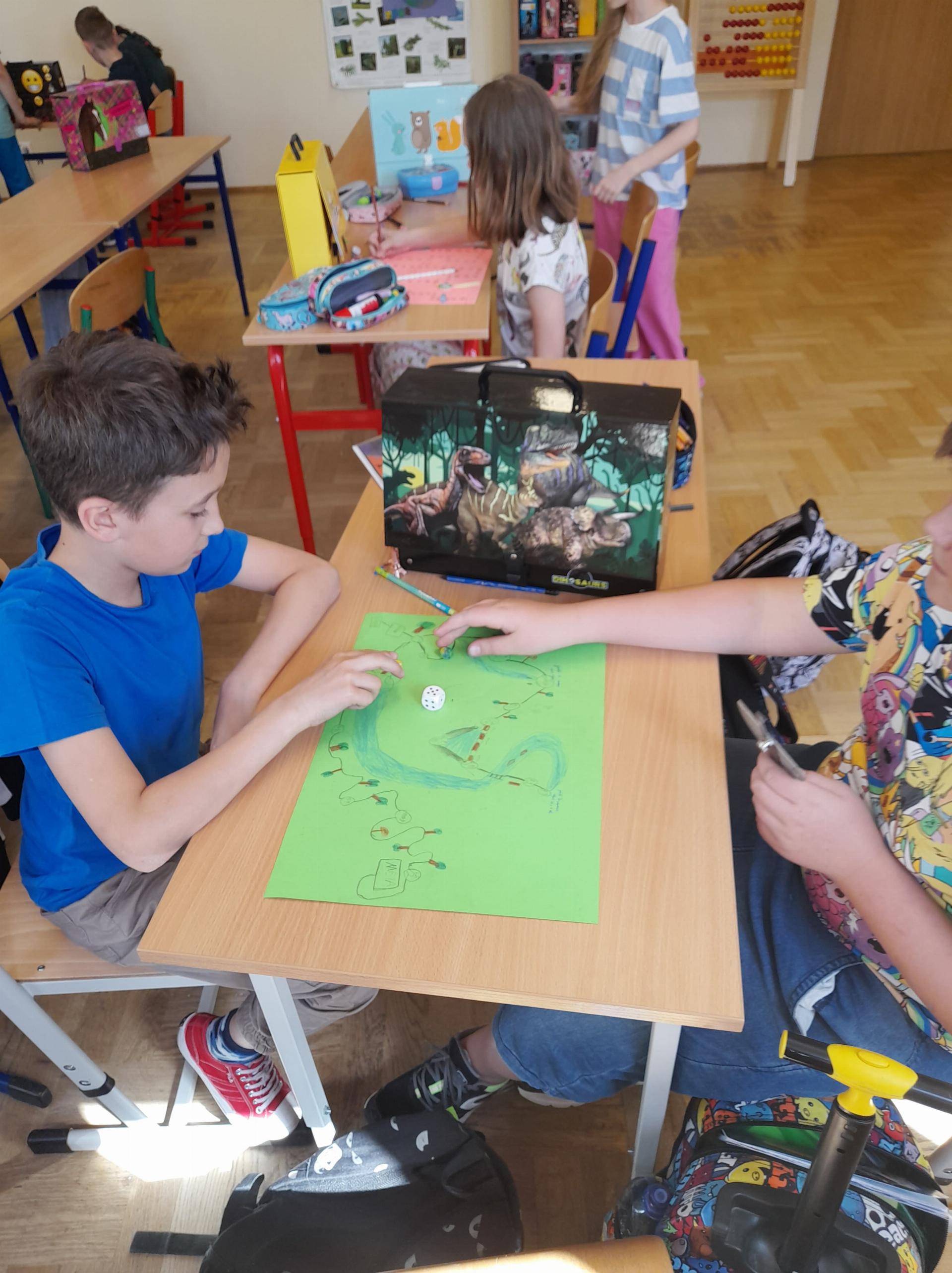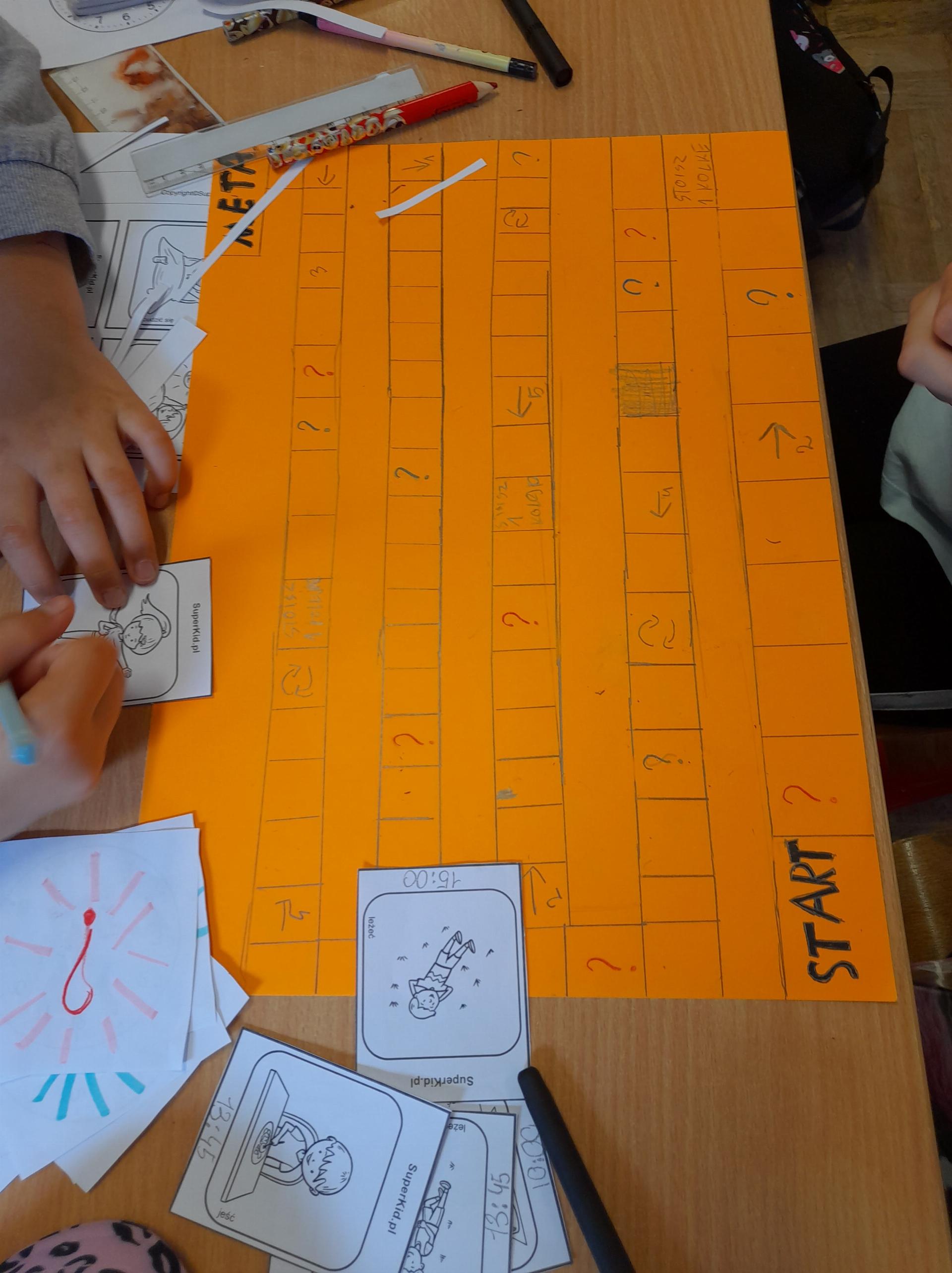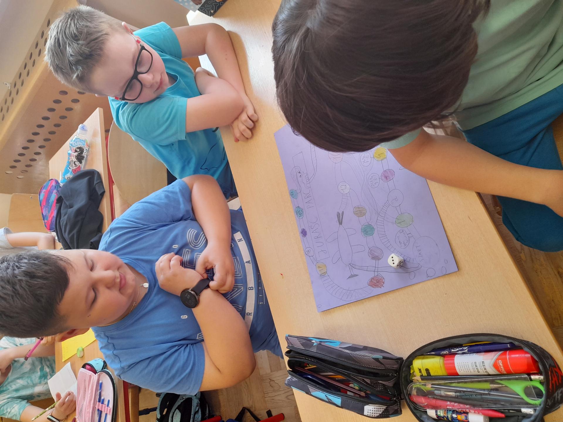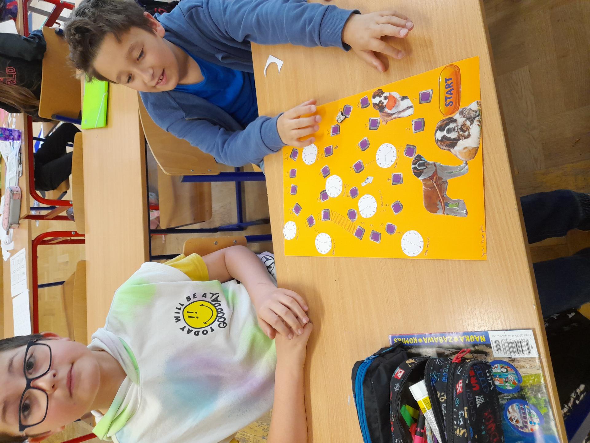 Program przewidywał zajęcia matematyczne, na których dzieci grają w znane gry planszowe, przygotowują własne gry lub korzystają z propozycji nauczyciela. Zajęcia były realizowane podczas edukacji matematycznej lub informatycznej. We współpracy z panią Moniką Perutą-Kozak zrobiliśmy też grę planszową w języku angielskim. Dzieci mogły ćwiczyć odczytywanie godzin na zegarze oraz słownictwo związane z czasem korzystając ze swoich gier. Stawiane przed uczniami zadania uczyły pracy w grupie, poszukiwania nietypowych rozwiązań, pobudzały kreatywność i twórcze myślenie.