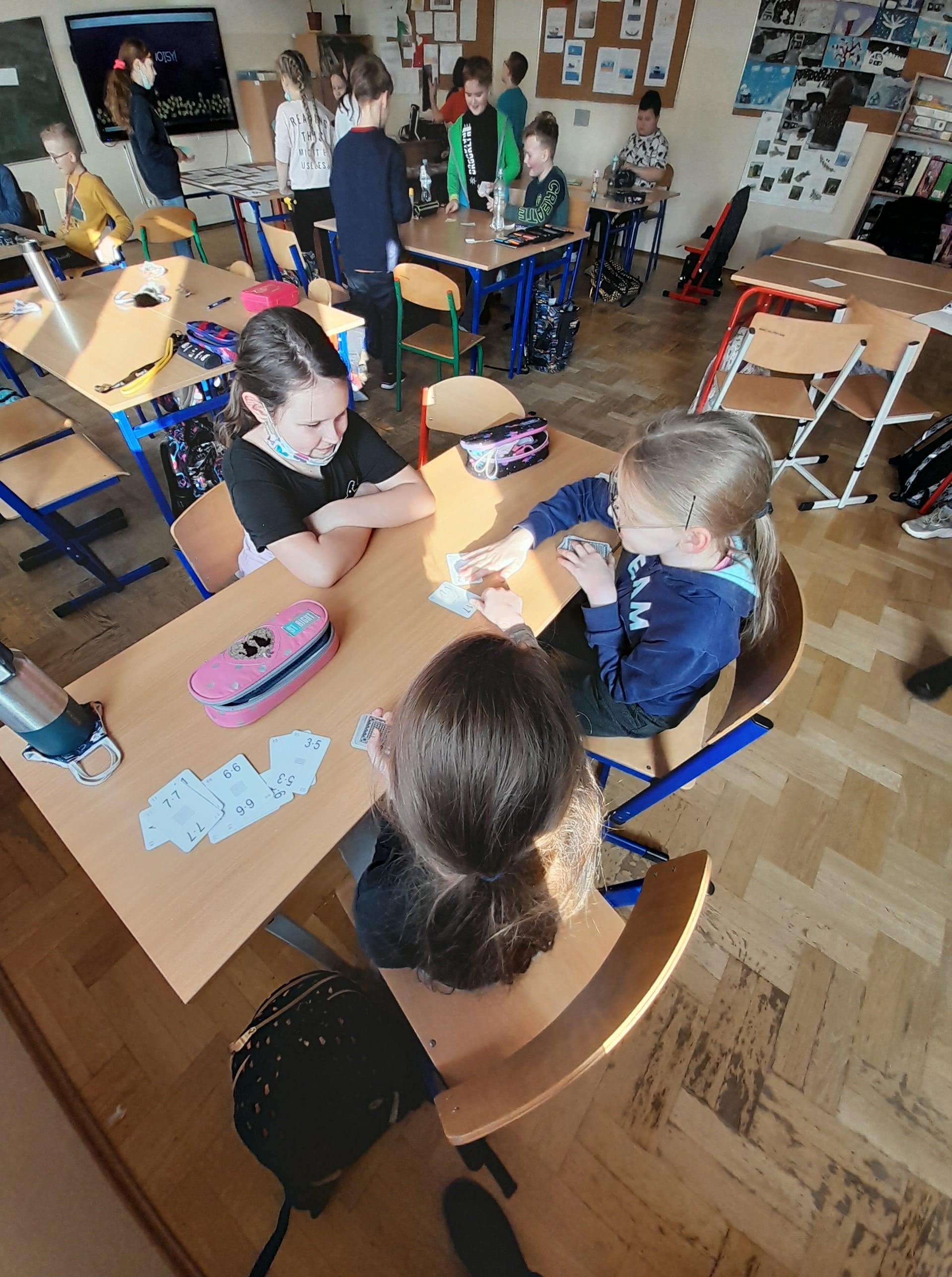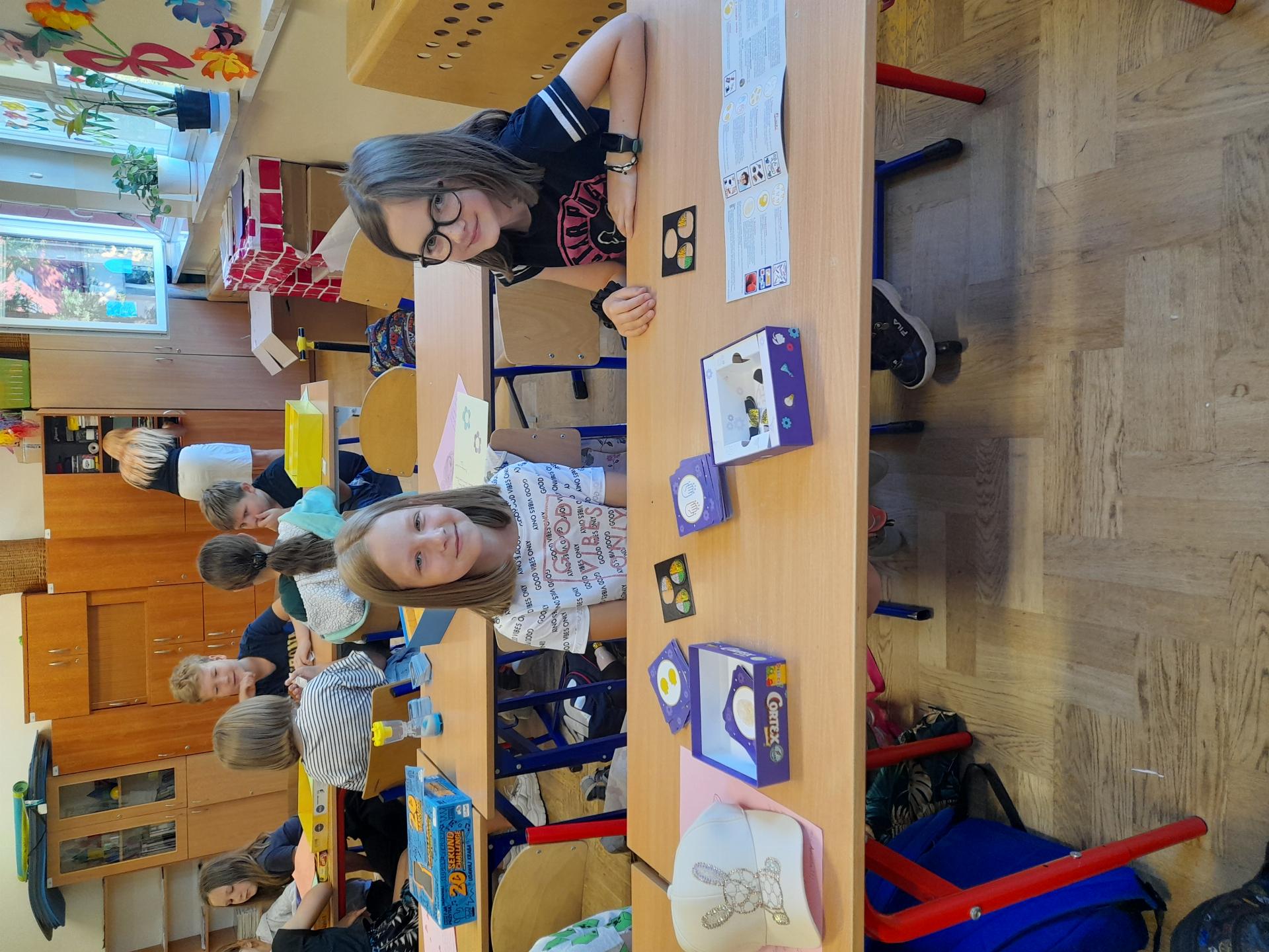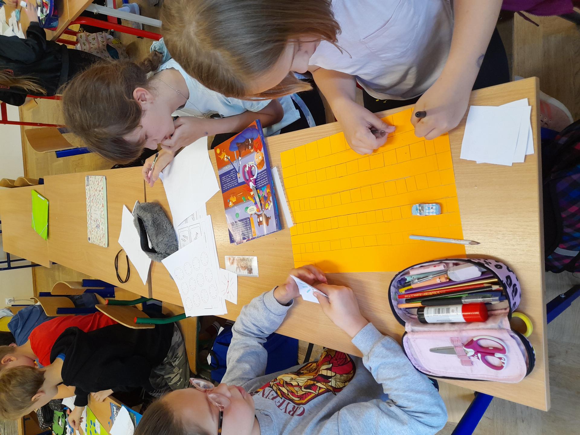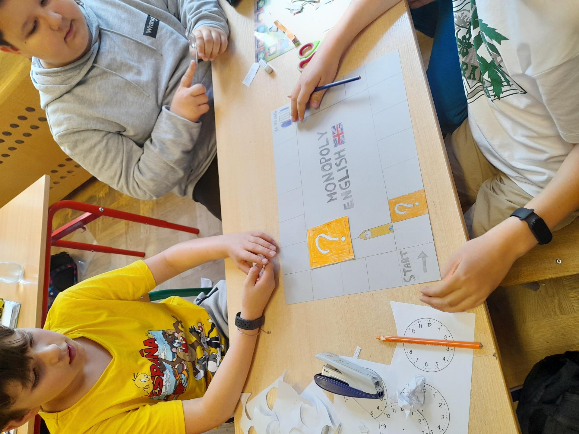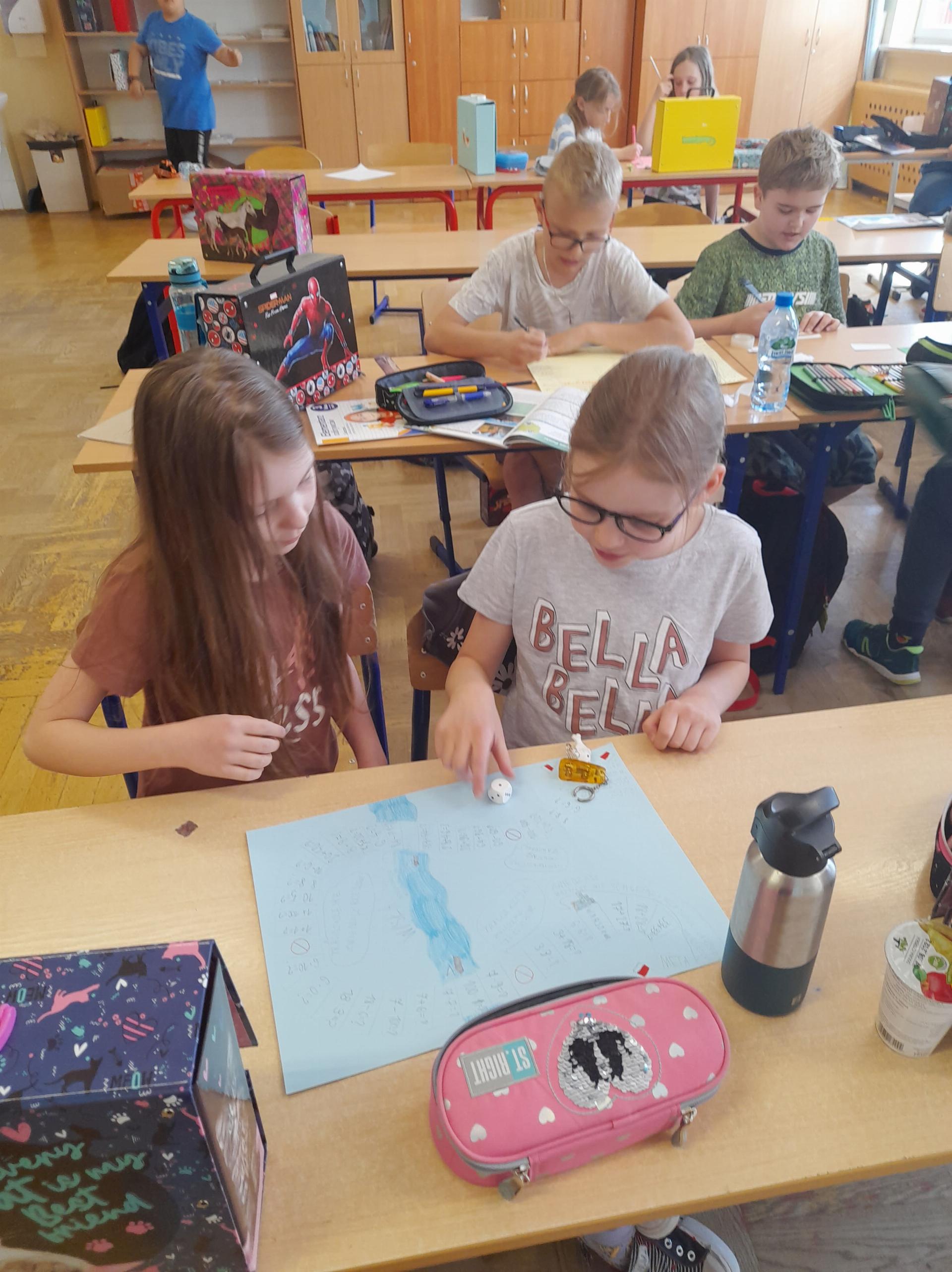 Program przewidywał zajęcia matematyczne, na których dzieci grają w znane gry planszowe, przygotowują własne gry lub korzystają z propozycji nauczyciela. Zajęcia były realizowane podczas edukacji matematycznej lub informatycznej. We współpracy z panią Moniką Perutą-Kozak zrobiliśmy też grę planszową w języku angielskim. Dzieci mogły ćwiczyć odczytywanie godzin na zegarze oraz słownictwo związane z czasem korzystając ze swoich gier. Stawiane przed uczniami zadania uczyły pracy w grupie, poszukiwania nietypowych rozwiązań, pobudzały kreatywność i twórcze myślenie.