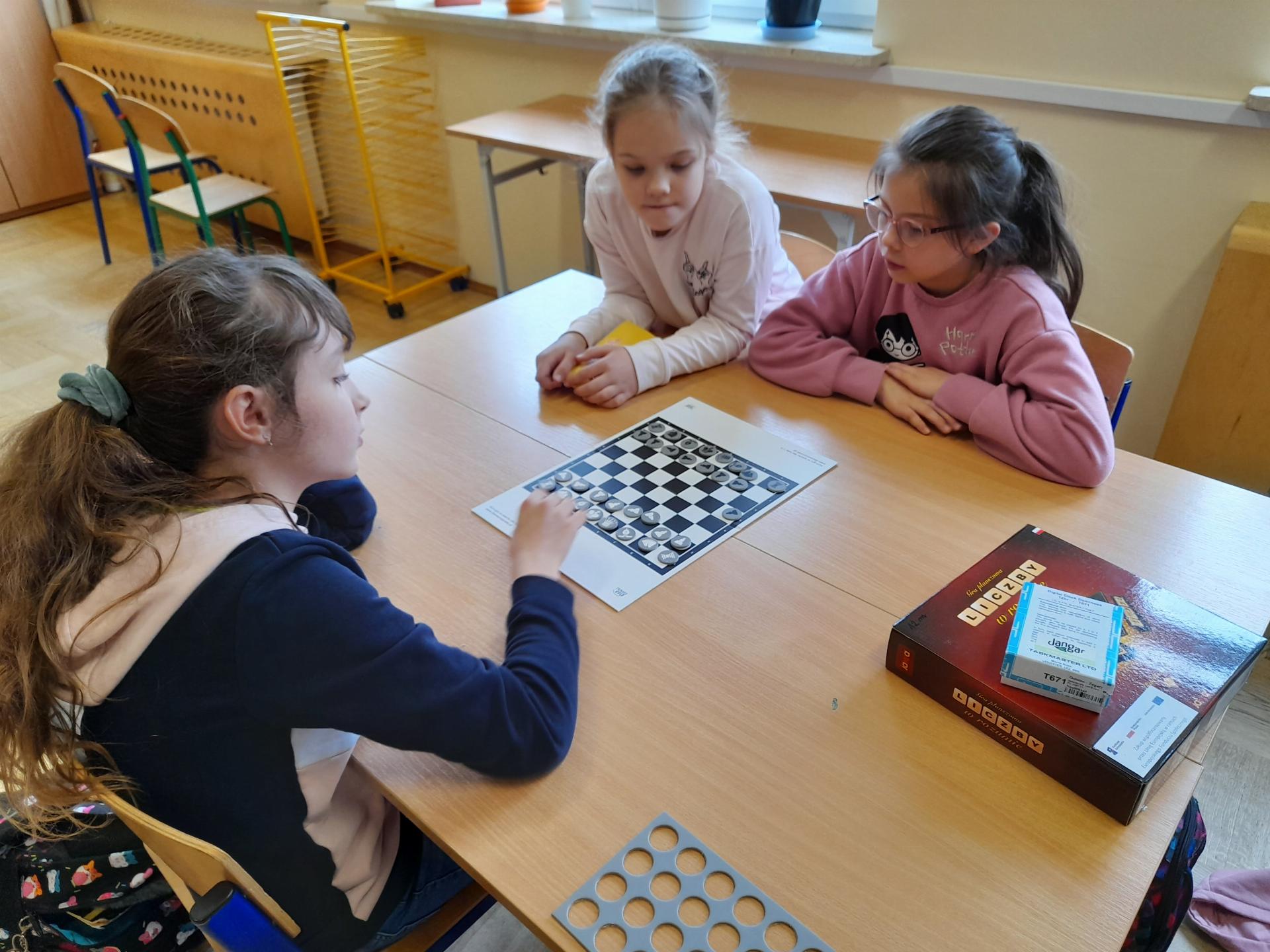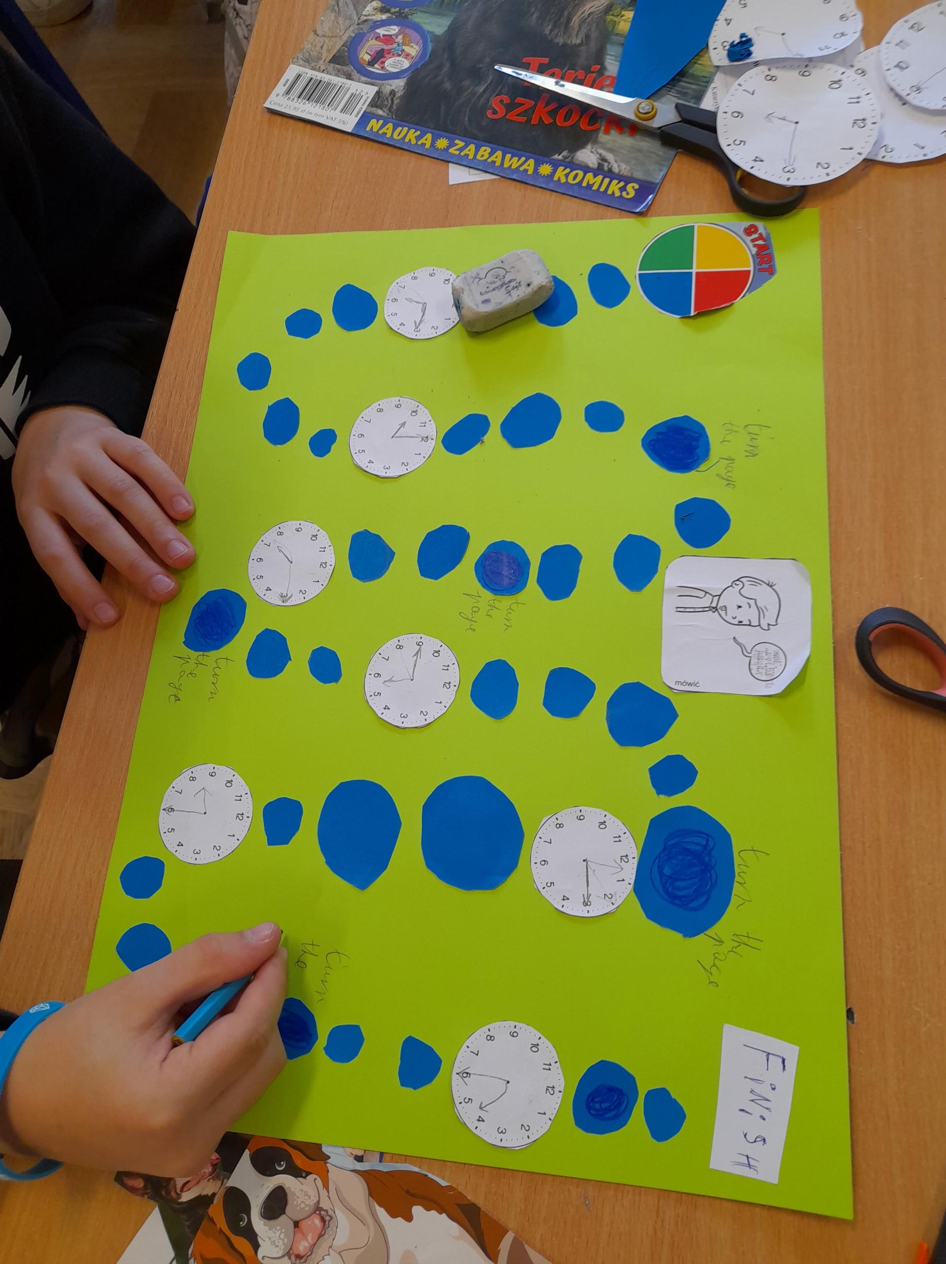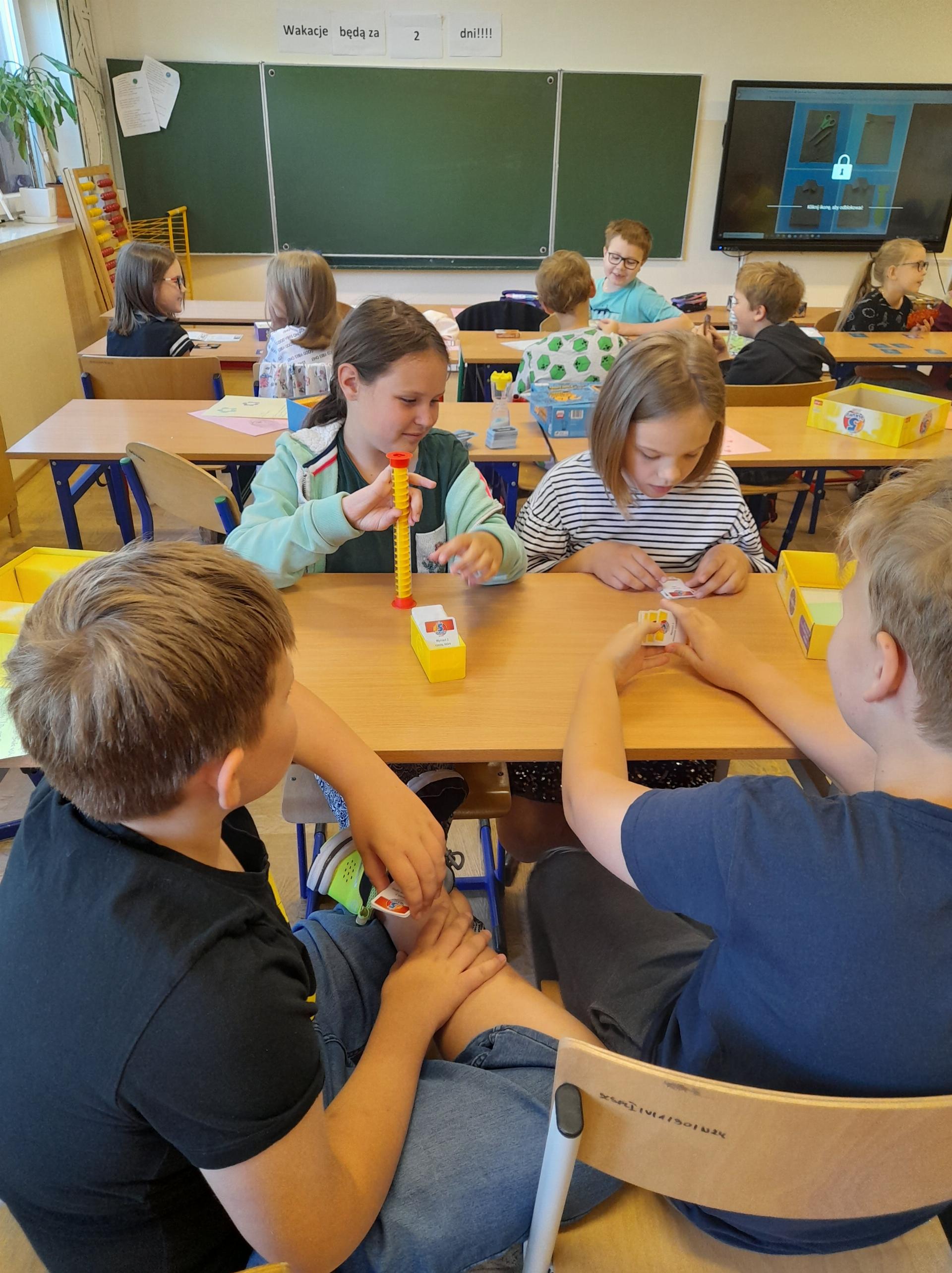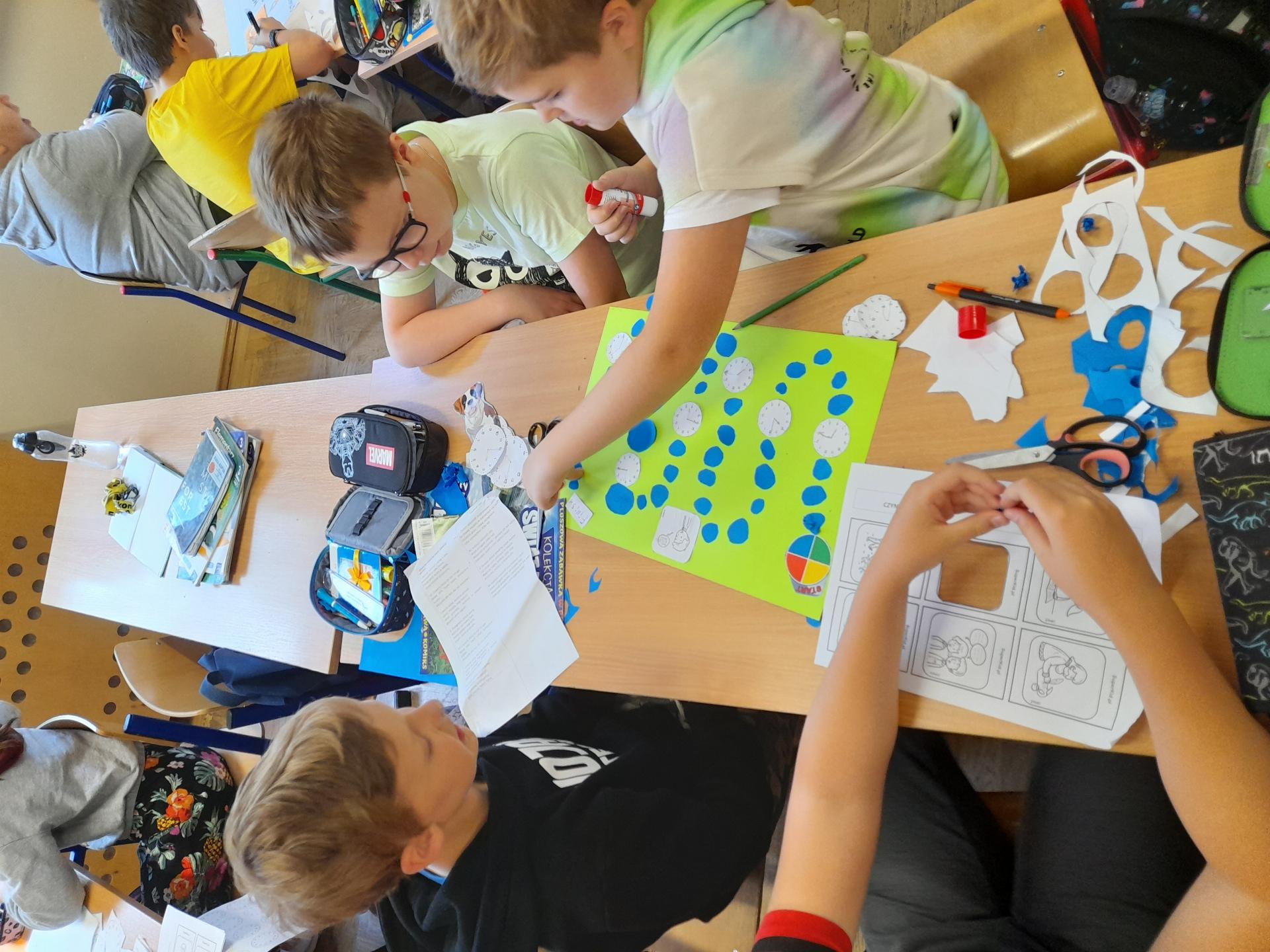 Program przewidywał zajęcia matematyczne, na których dzieci grają w znane gry planszowe, przygotowują własne gry lub korzystają z propozycji nauczyciela. Zajęcia były realizowane podczas edukacji matematycznej lub informatycznej. We współpracy z panią Moniką Perutą-Kozak zrobiliśmy też grę planszową w języku angielskim. Dzieci mogły ćwiczyć odczytywanie godzin na zegarze oraz słownictwo związane z czasem korzystając ze swoich gier. Stawiane przed uczniami zadania uczyły pracy w grupie, poszukiwania nietypowych rozwiązań, pobudzały kreatywność i twórcze myślenie.