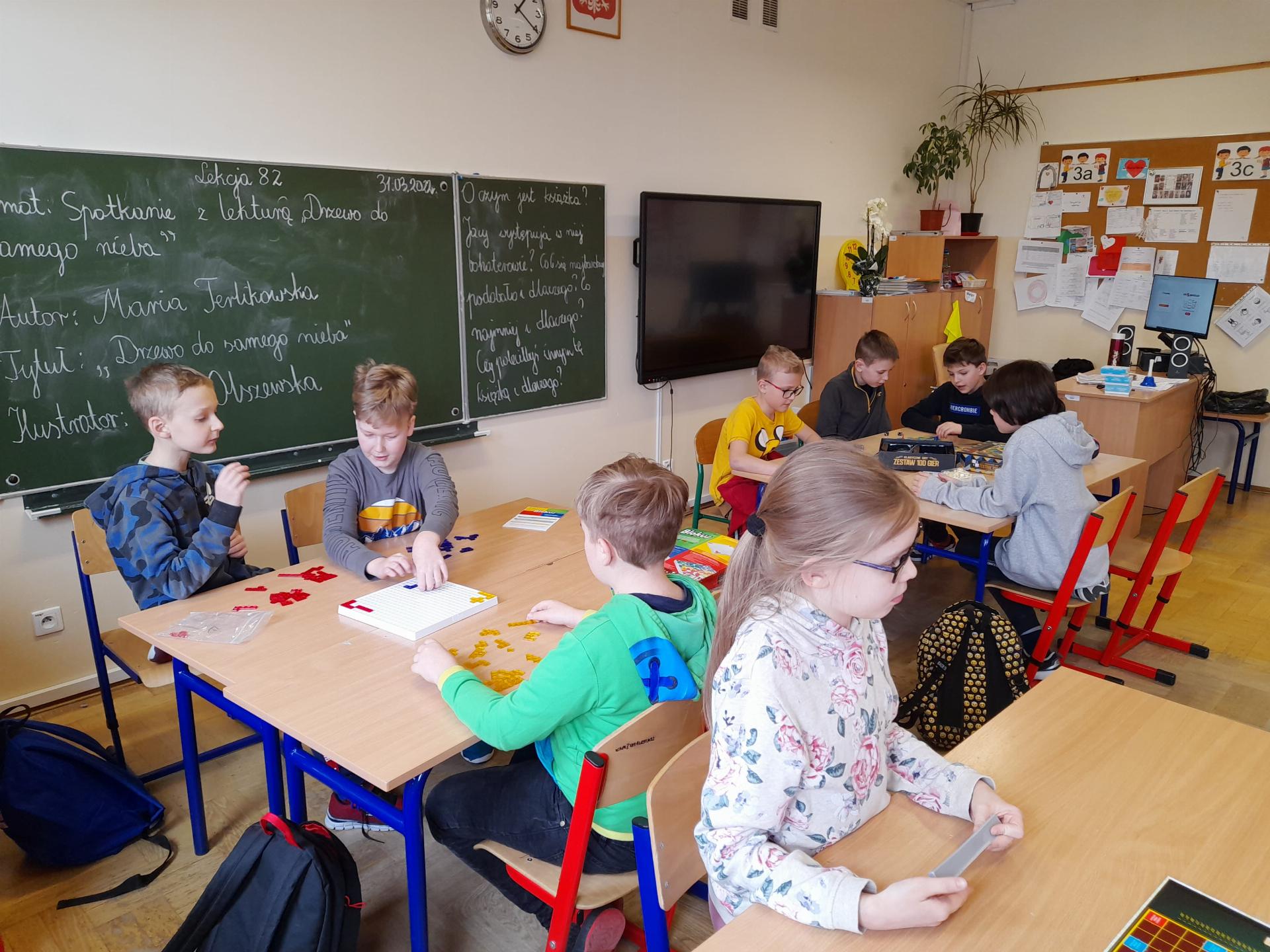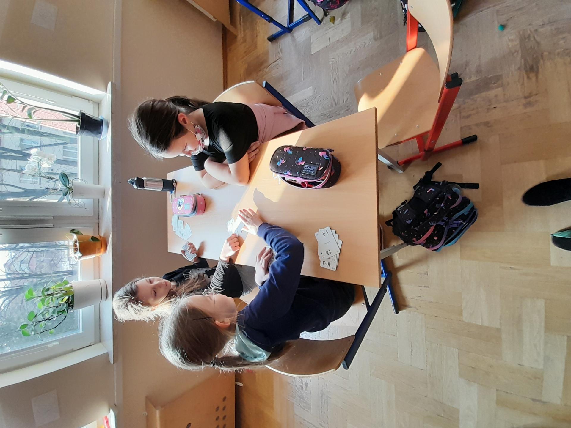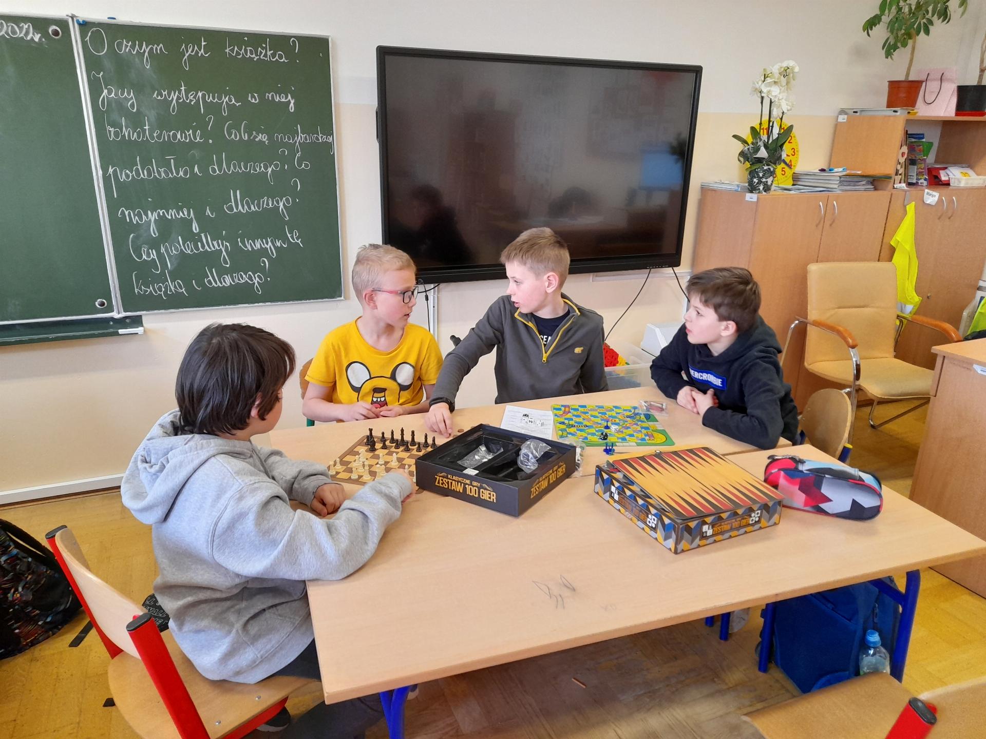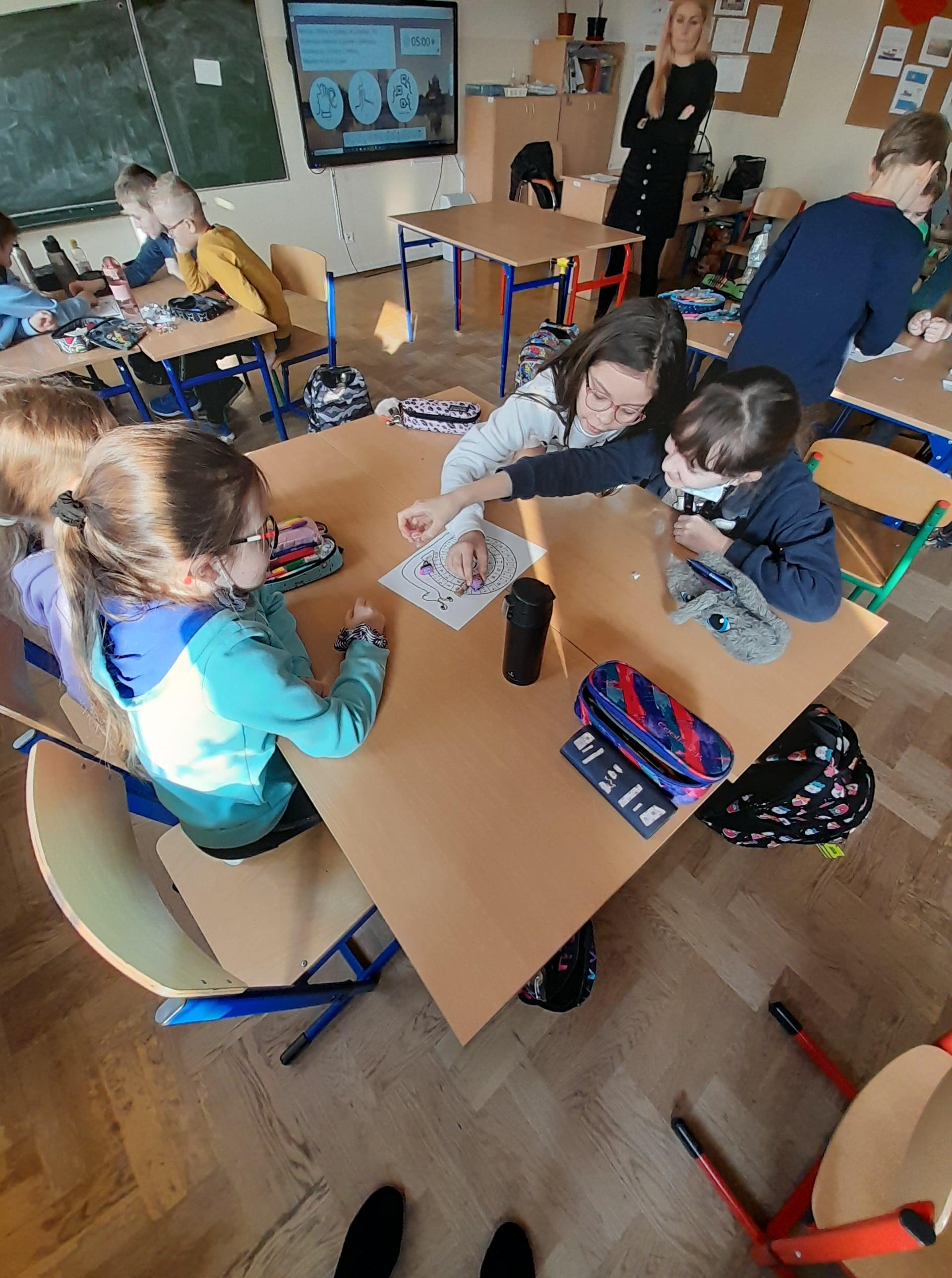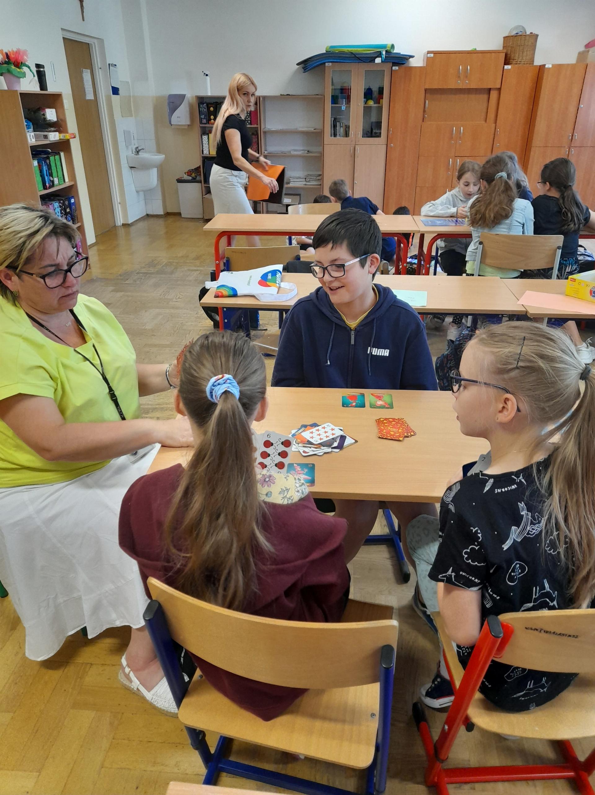 Program przewidywał zajęcia matematyczne, na których dzieci grają w znane gry planszowe, przygotowują własne gry lub korzystają z propozycji nauczyciela. Zajęcia były realizowane podczas edukacji matematycznej lub informatycznej. We współpracy z panią Moniką Perutą-Kozak zrobiliśmy też grę planszową w języku angielskim. Dzieci mogły ćwiczyć odczytywanie godzin na zegarze oraz słownictwo związane z czasem korzystając ze swoich gier. Stawiane przed uczniami zadania uczyły pracy w grupie, poszukiwania nietypowych rozwiązań, pobudzały kreatywność i twórcze myślenie.