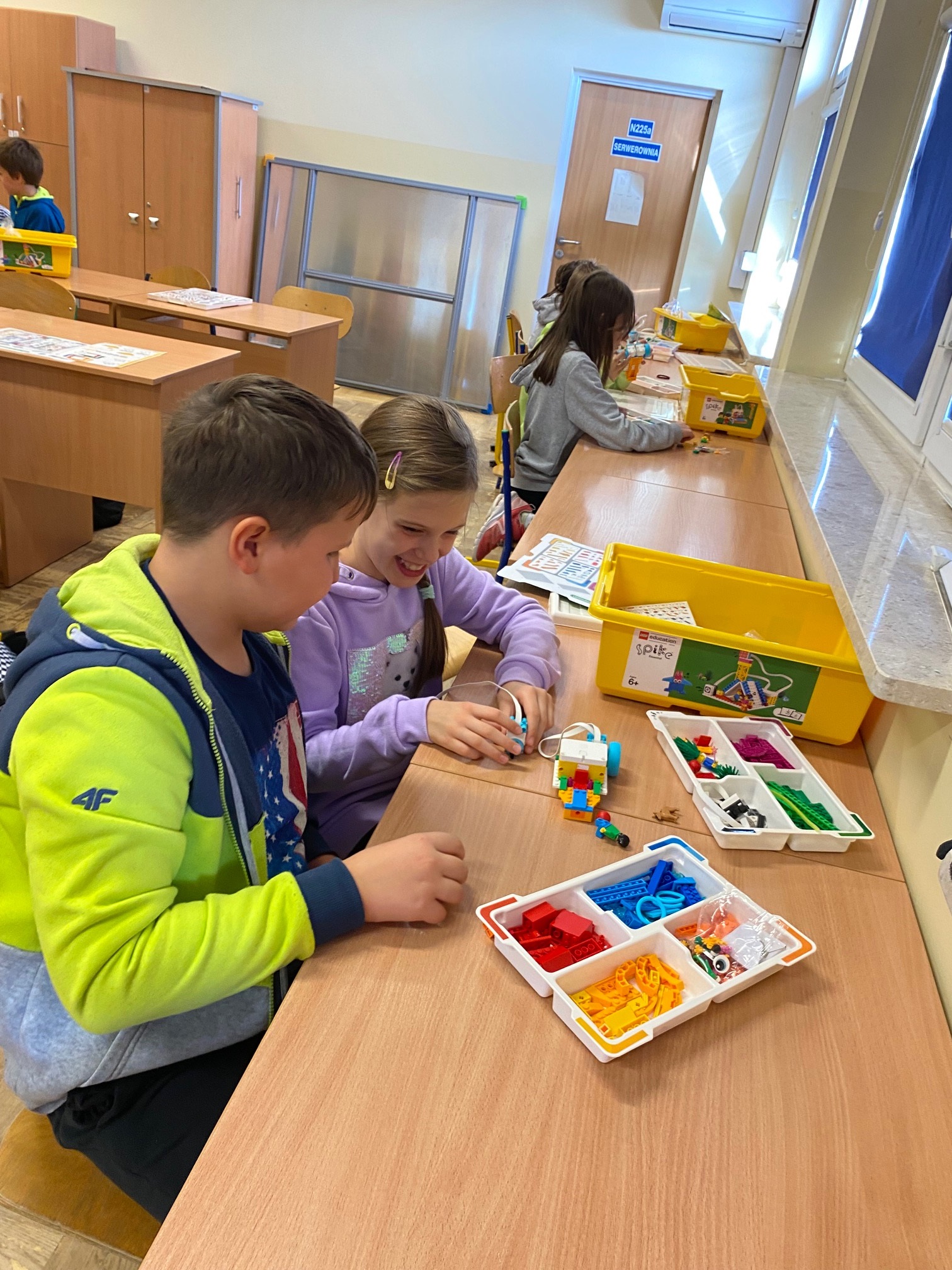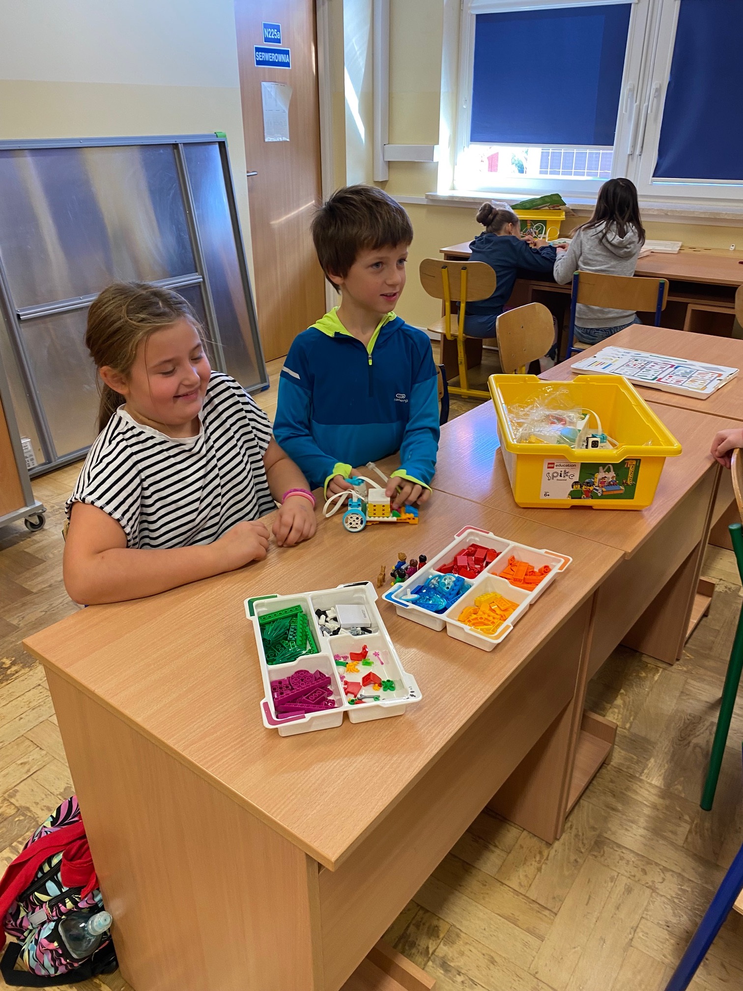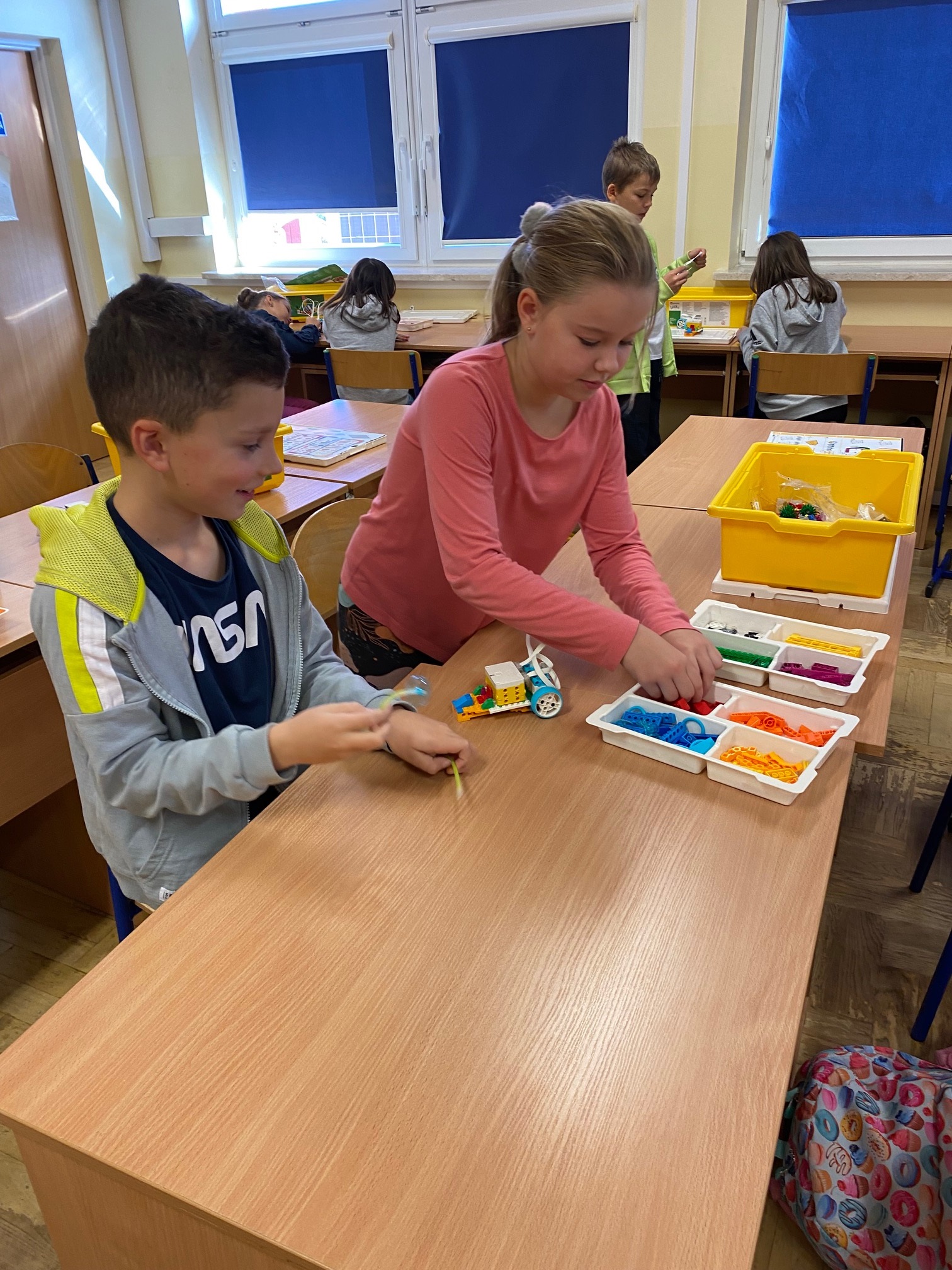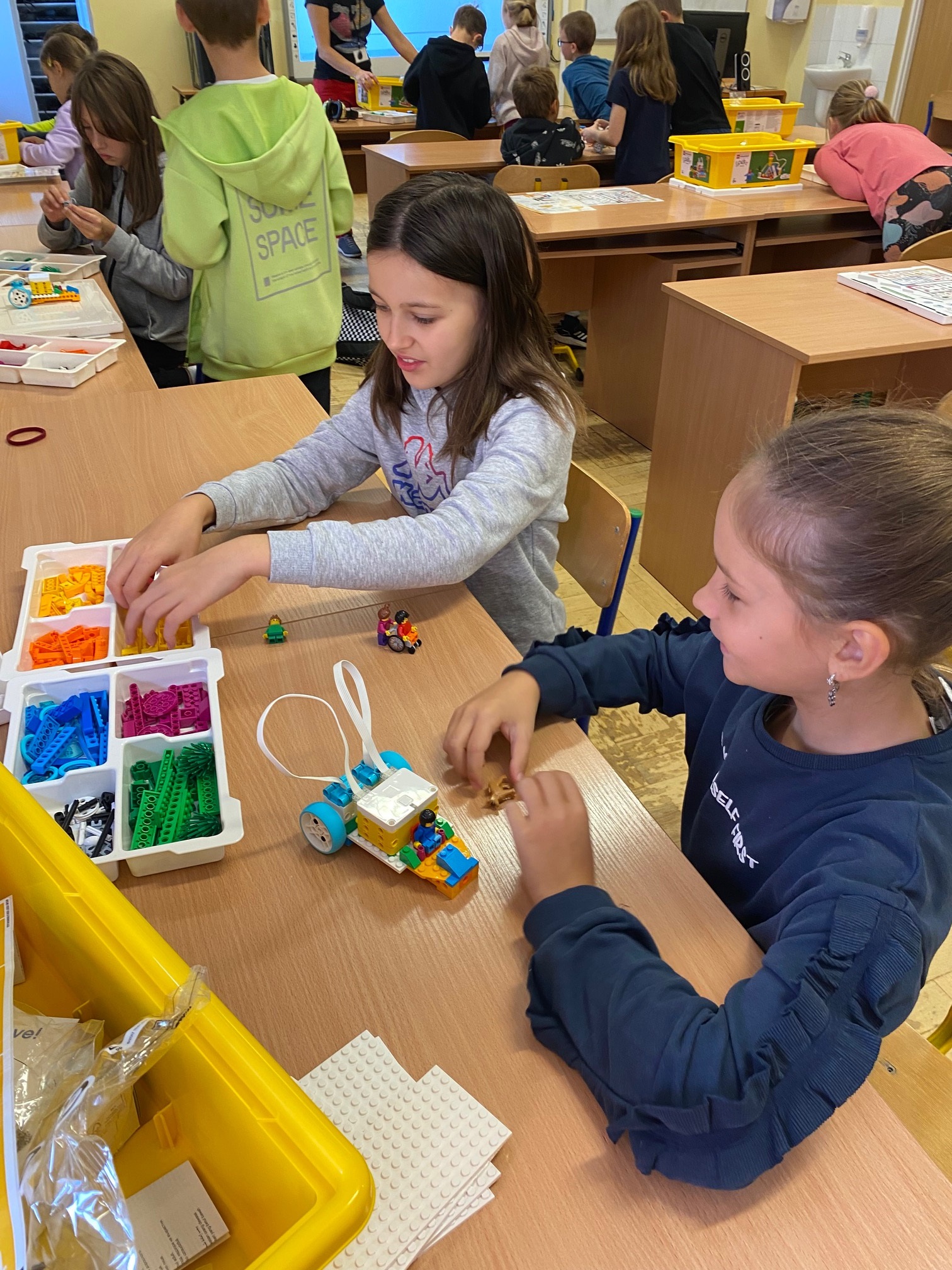 Dzieci z klasa 3b z zapaÅ‚em budowaÅ‚y pojazdy z klocków Lego Education Spike. Lekcja przeprowadzona zostaÅ‚a dziÄ™ki Laboratoriom PrzyszÅ‚oÅ›ci.