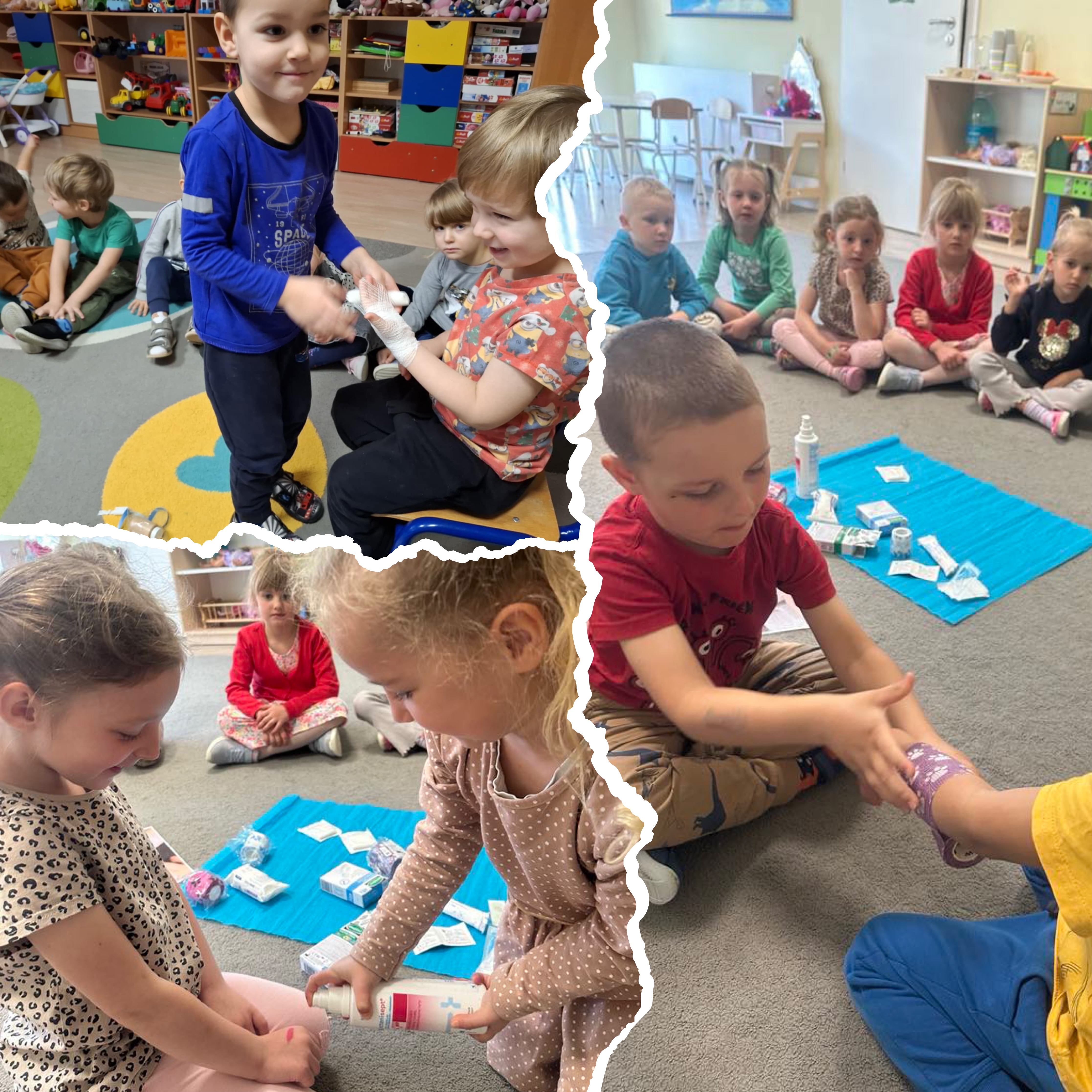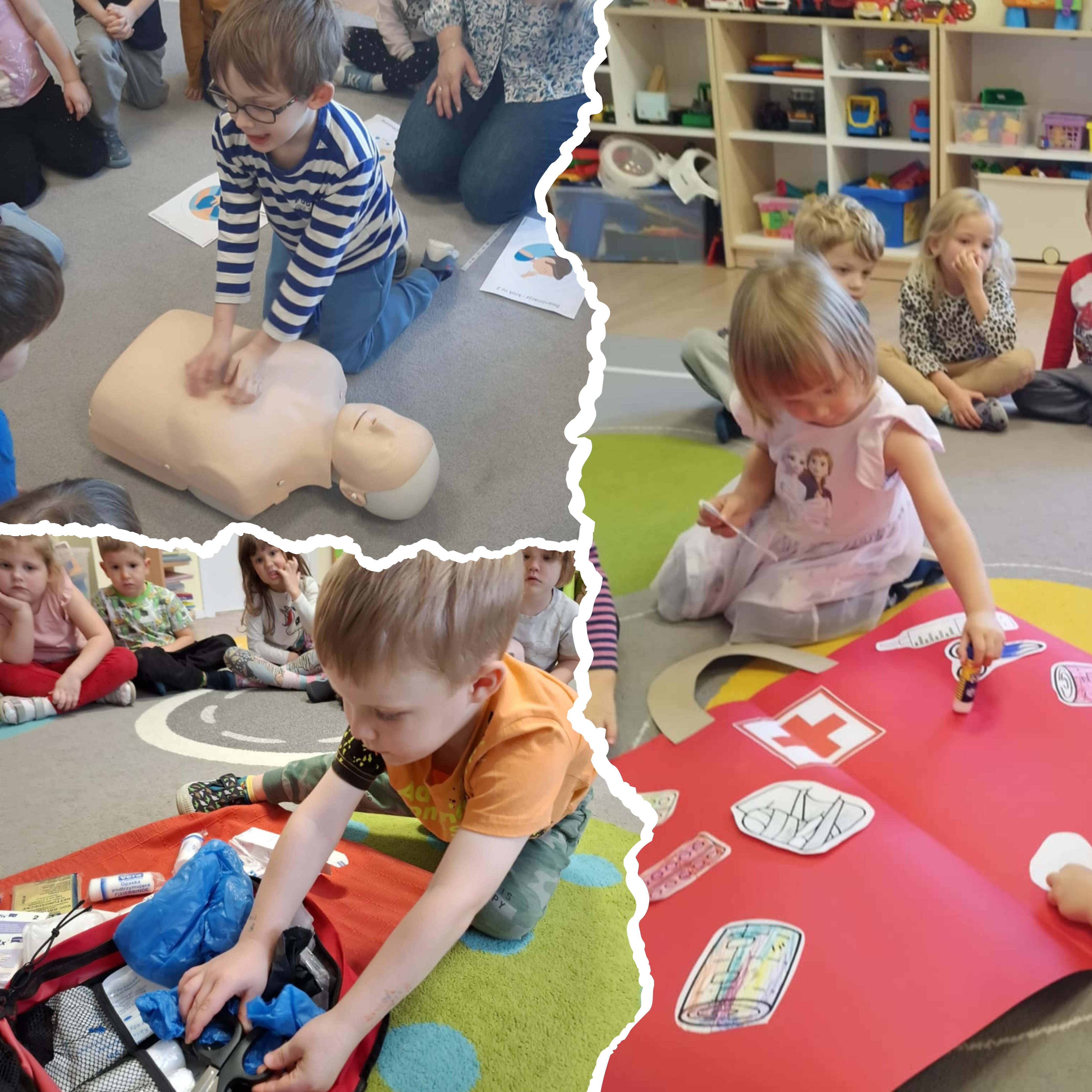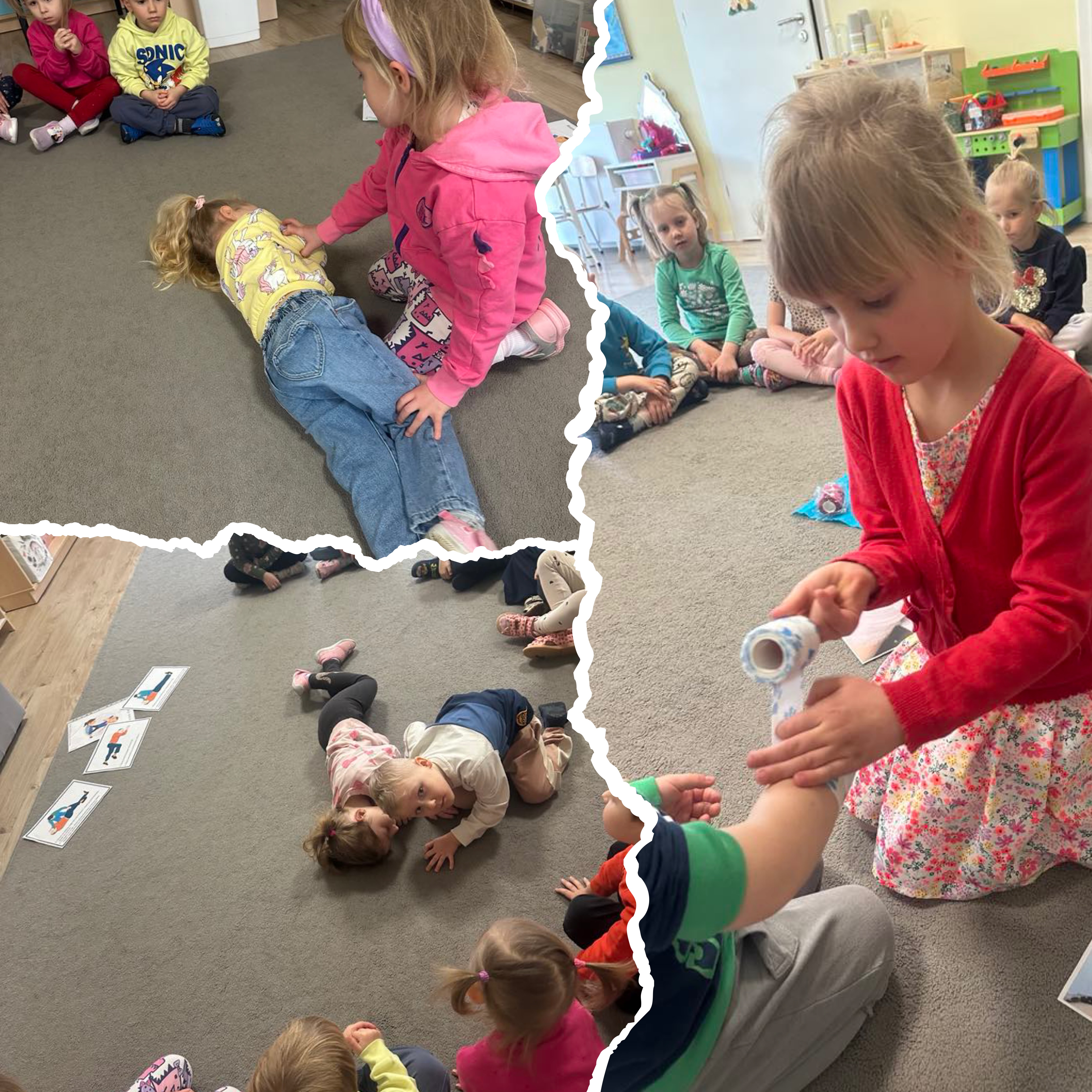 ZajÄ™cia odbywaÅ‚y siÄ™ w formie zabawy, pokazów, scenek dramowych i ćwiczeÅ„ praktycznych z użyciem fantomów, apteczek oraz materiaÅ‚ów edukacyjnych dostosowanych do wieku dzieci.