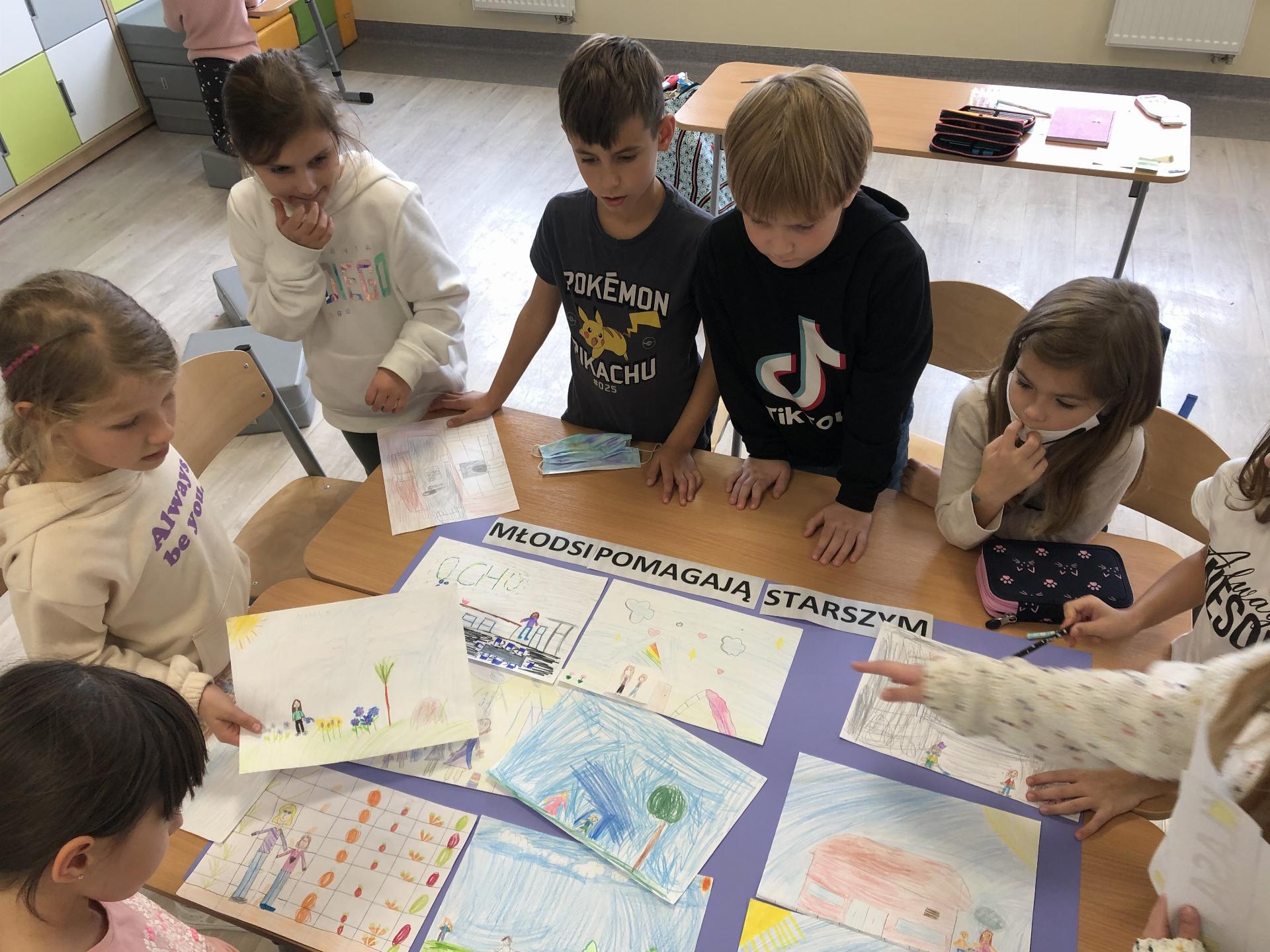 Na zajęciach świetlicowych w ramach realizacji projektu „Z kulturą mi do twarzy” wykonując zadanie „MŁODSI STARSZYM POMAGAJĄ” poruszyliśmy trudny temat, jakim jest pomoc starszym osobom. Każde z dzieci wykonało ilustrację, w której zaprezentowało sytuacje, gdy pomaga starszym, np. rodzicom czy dziadkom. Następnie wykonaliśmy plakat prezentujący pewne zachowania w różnych sytuacjach. Zajęcia pokazały ogromną wrażliwość dzieci wobec potrzebujących i wzmocniły postawę odpowiedzialności za siebie i drugiego człowieka.