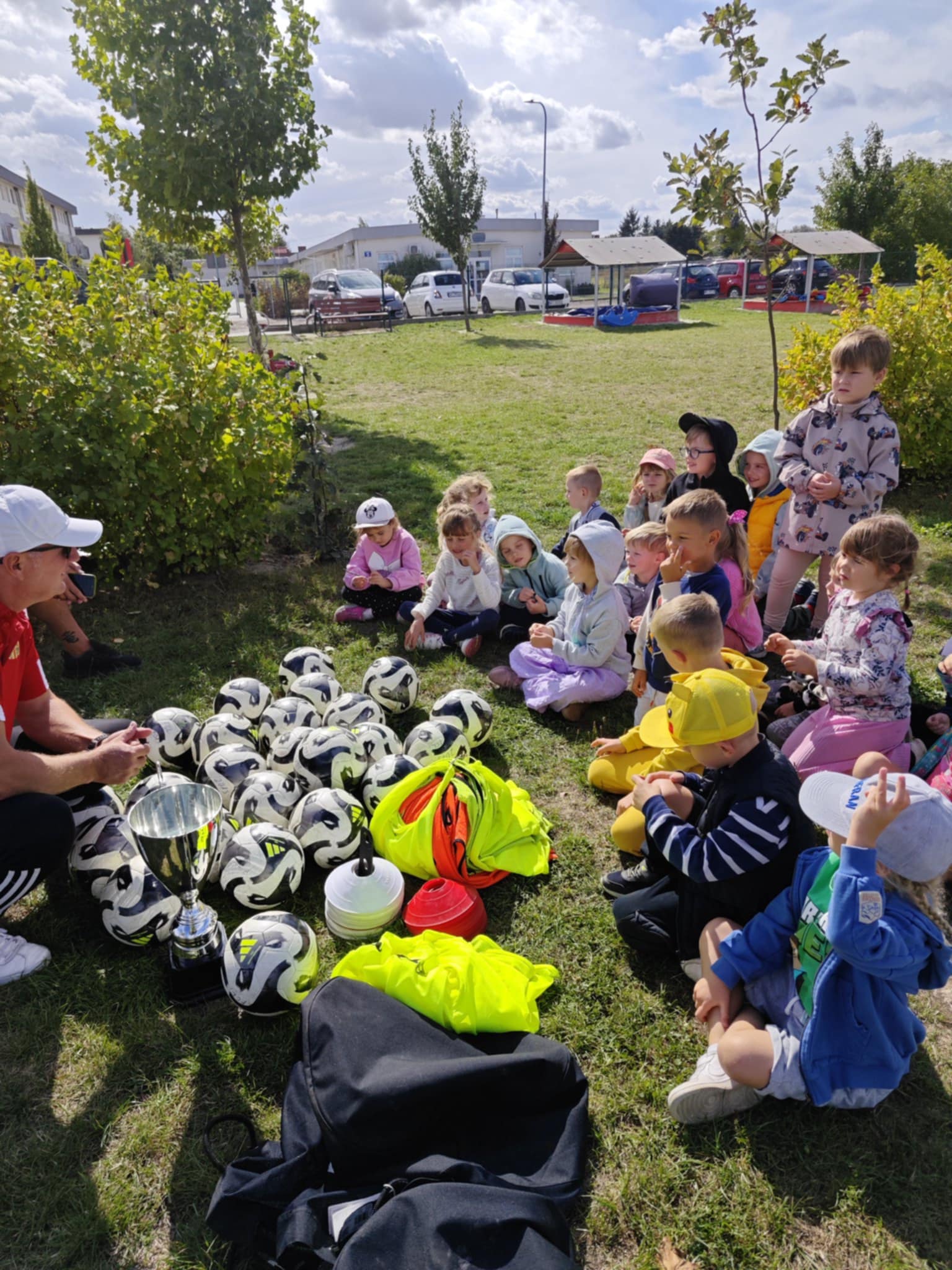We wtorkowe popoÅ‚udnie nasze przedszkolaki z grupy „Tygryski” w ramach projektu "Poznajemy zawody - Å›wiat ludzi dorosÅ‚ych widziany oczami dziecka", miaÅ‚y wyjÄ…tkowÄ… okazjÄ™ spotkać siÄ™ z gośćmi, którzy na co dzieÅ„ pracujÄ… z pasjÄ… i energiÄ… – trenerami piÅ‚ki nożnej w FC Lesznowola: Wojciechem Raszewskim i IvicÄ… Barnjakiem.