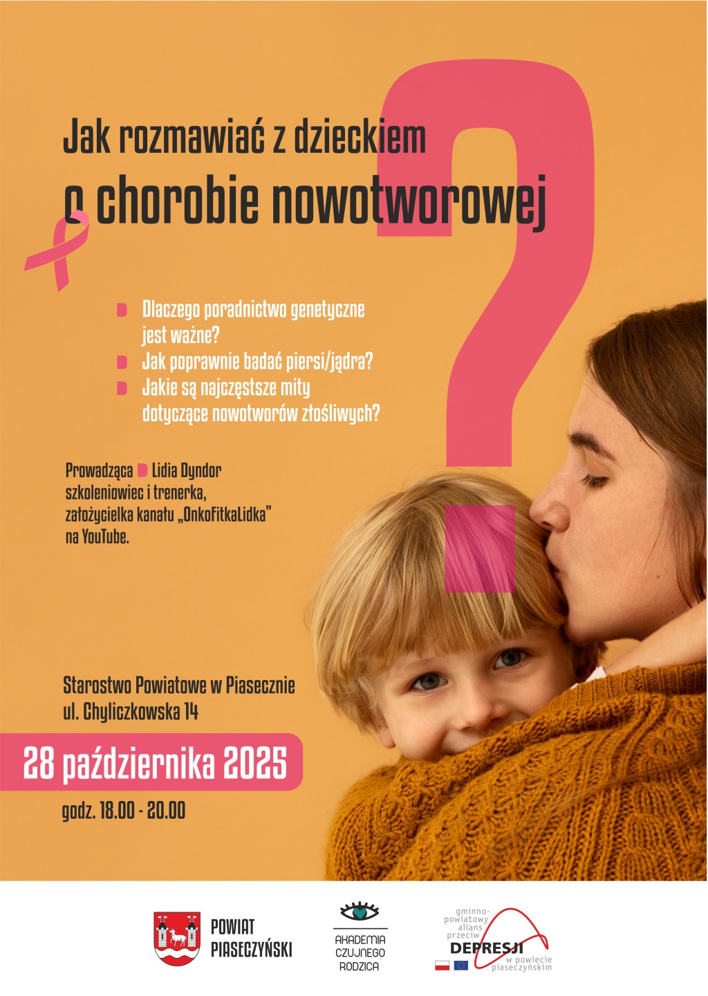 Dodatkowo pragnę poinformować, że wielkimi krokami zbliża się kolejne spotkanie w ramach Akademii Czujnego Rodzica pt. „Jak rozmawiać z dzieckiem o chorobie nowotworowej” – niezwykle ważna i delikatna kwestia, która dotyka wielu rodzin, a zarazem uczy, jak mądrze i z empatią rozmawiać z dzieckiem o trudnych emocjach i chorobie.
