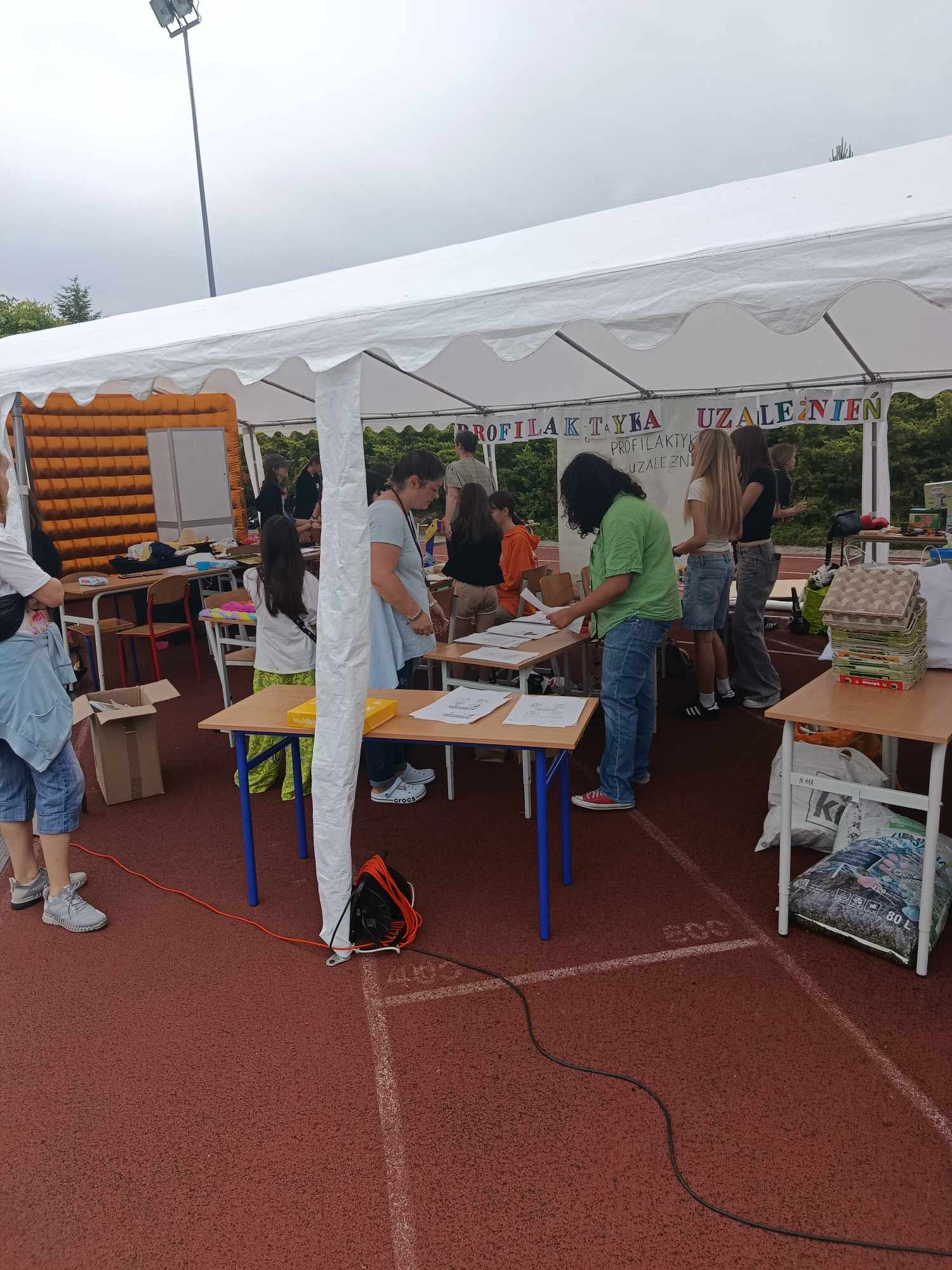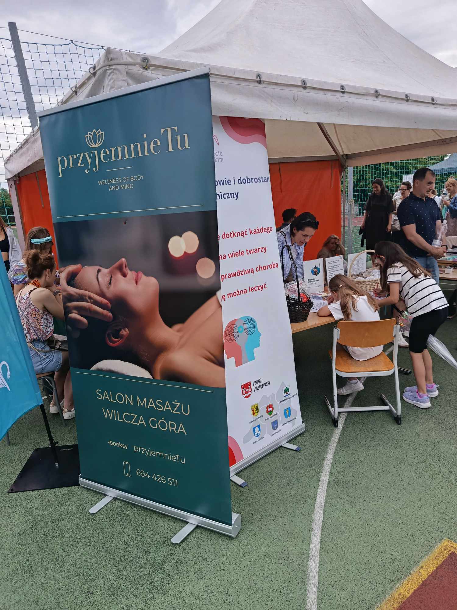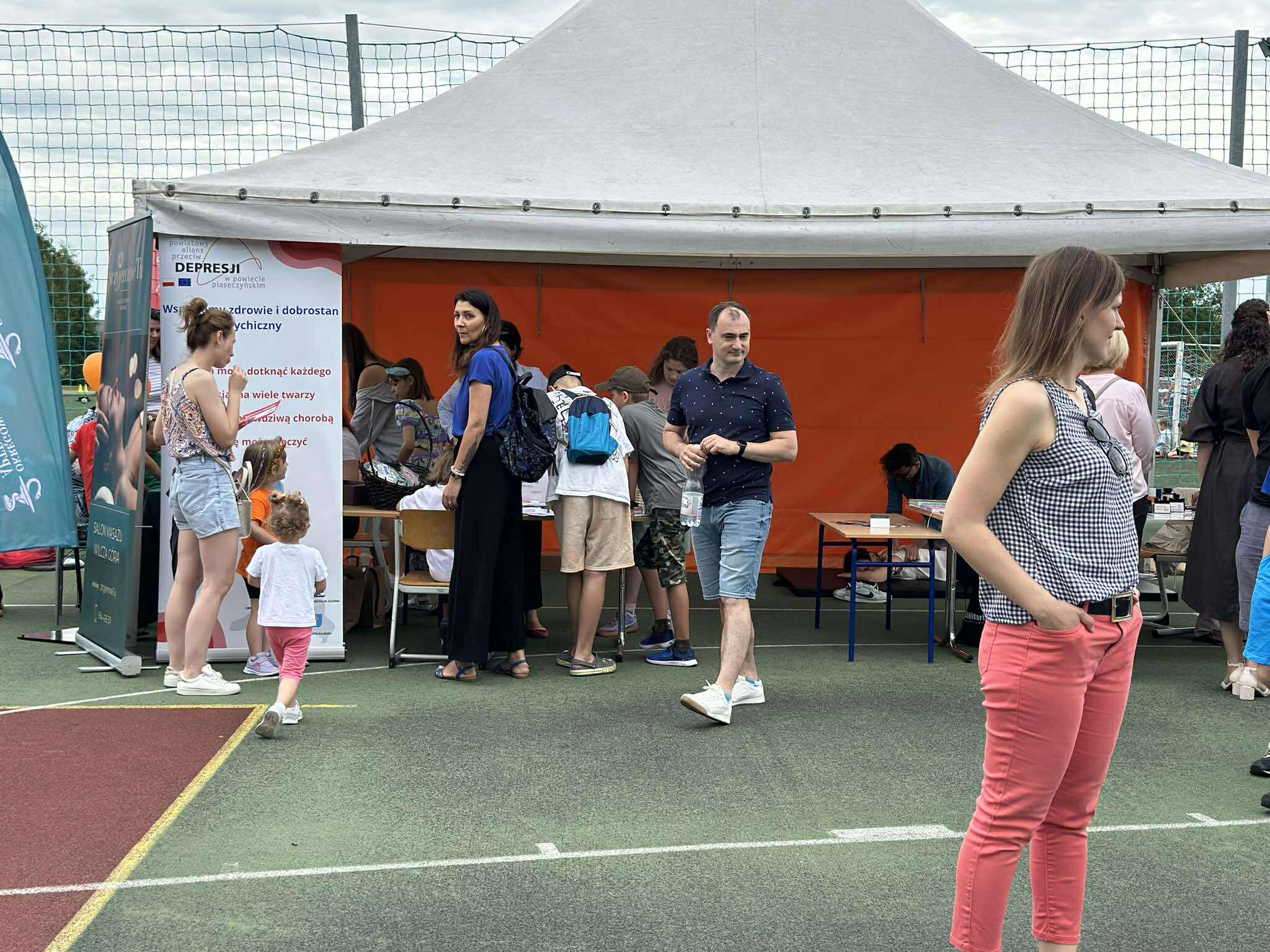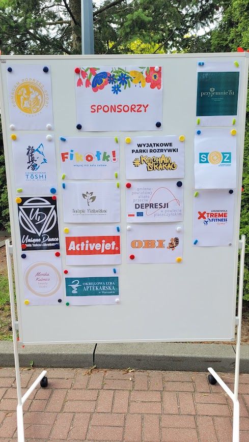 Na stadionie mnóstwo wspaniałych występów dzieci i....nauczycieli, a oprócz tego "miasteczko" profilaktyczne, gdzie można było skorzystać z bezpłatnych badań z Okręgowej Izby Aptekarskiej, pomasować się u Piotra z przyjemnie TU, poczuć wspaniałe zapachy od Terapie Naturalnie i pobawić się razem z Gminno-Powiatowym Alianz Przeciw Depresji. Byli z nami również: Stowarzyszenie Ochrony Zdrowia z karetką i możliwością ćwiczenia pierwszej pomocy, Fundacja Pomagam Poprzez Sport z poradami dietetycznymi i zdrowego stylu życia oraz Klub Karate Kyokushin Toshi Maciej Miller z atrakcjami sportowymi. U Fikołków był wieczny tłum dzieci do malowania buź, w Kocham Skakać dzieci mogły pobawić się z animatorami, a Xtreme Fitness Lesznowola poiło wszystkich spragnionych napojami witaminowymi. Serdeczne podziękowania ślemy również do sponsorów: Activejet, Obi, Monika Kuźmicz beauty studio, Unique Dance. Dziękujemy również Pełnomocnikowi ds. profilaktyki uzależnień w Gminie Lesznowola za wsparcie pikniku.