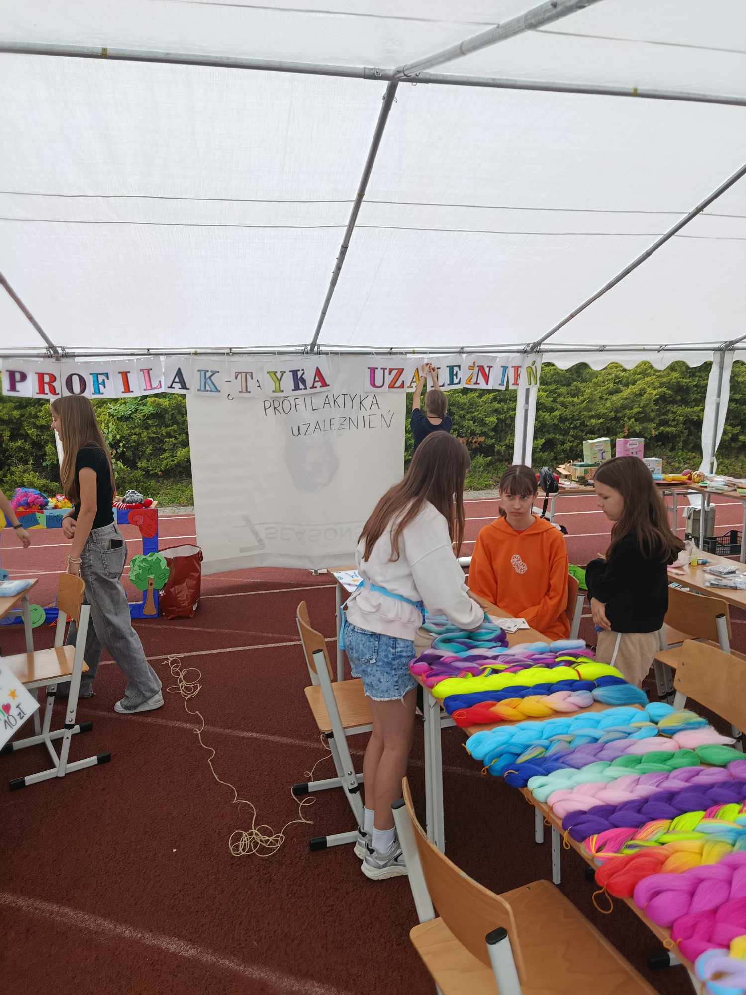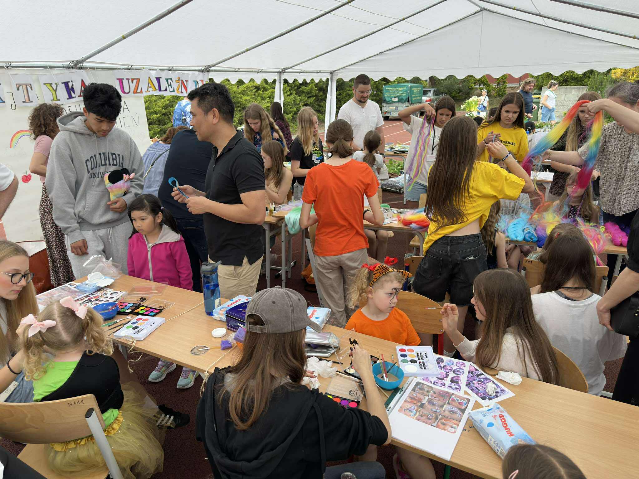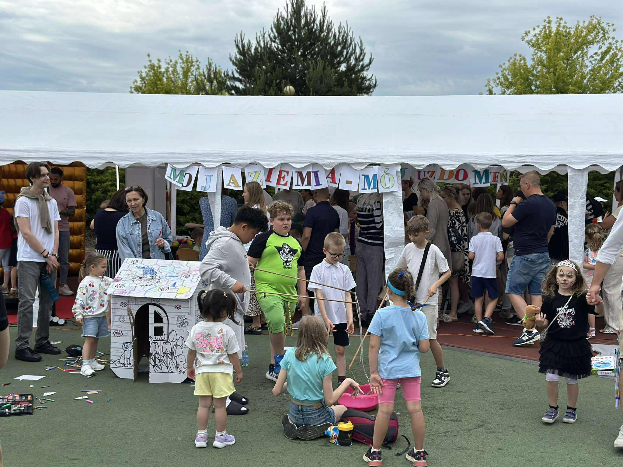 Oprócz tych atrakcji było już drugi rok stoisko wymiany roślin - Mała Doniczka=wielka radość, gdzie można było zakupić roślinę z hodowli szkolnych oraz stoisko Samorządu Szkolnego, Nauczycieli Pomocy Psychologiczno-Pedagogicznej z naszej placówki i projektu "Moja Ziemia-mój dom", który realizujemy w szkole. Tam to dopiero się działo - kolorowe tatuaże, warkocze, malowanie twarzy, zabawy plastyczne, fotografie - a wszystko w duchu profilaktyki zdrowotnej. Odwiedził nas również żołnierz z WOT-u - chłopcy byli zachwyceni mundurem. Nauczyciele wf-u przygotowali moc atrakcji sportowych z nagrodami. Były dmuchańce i fotobudka :)