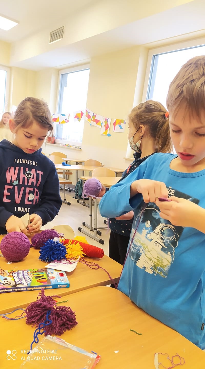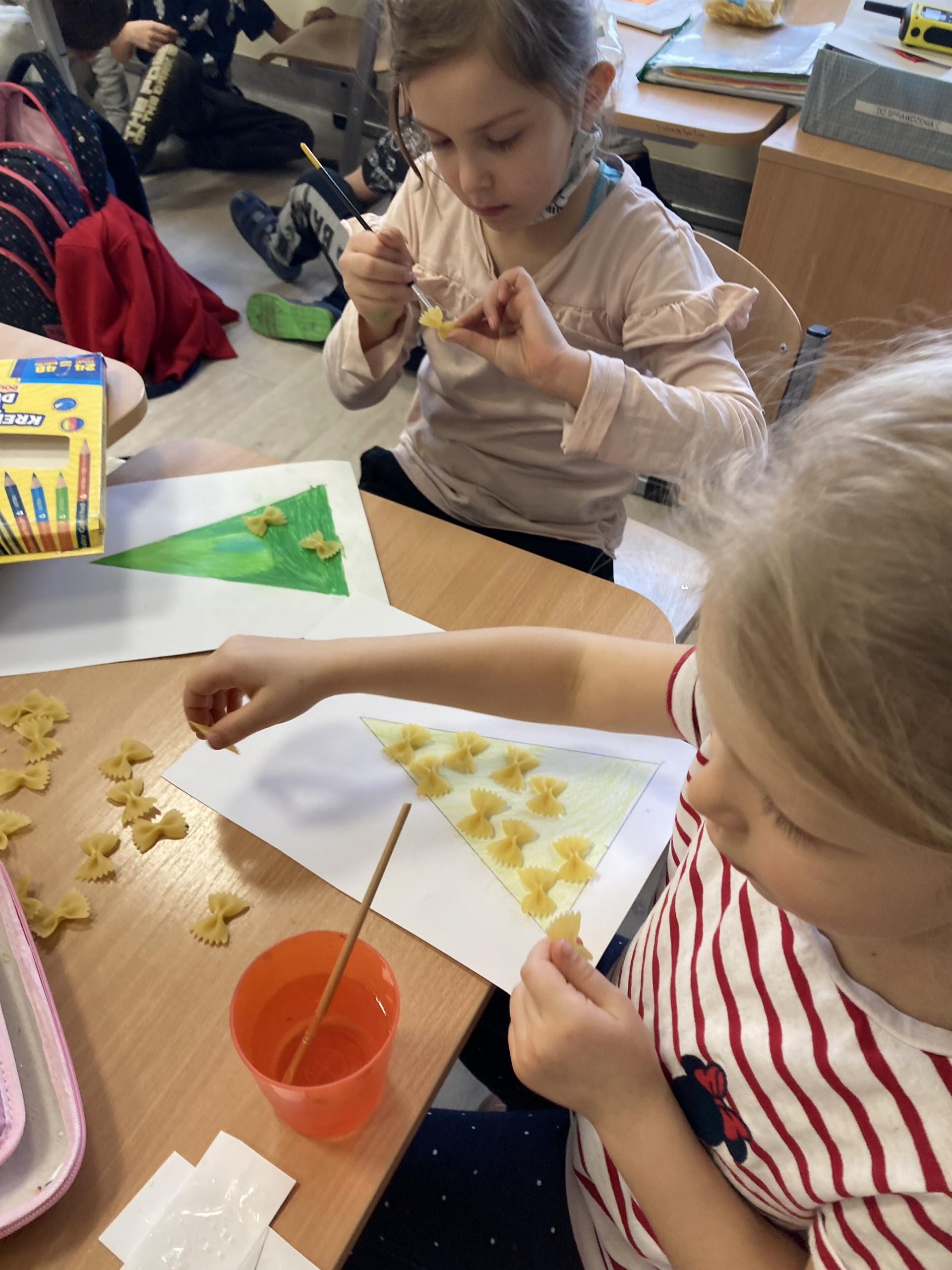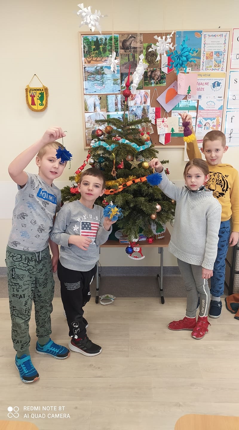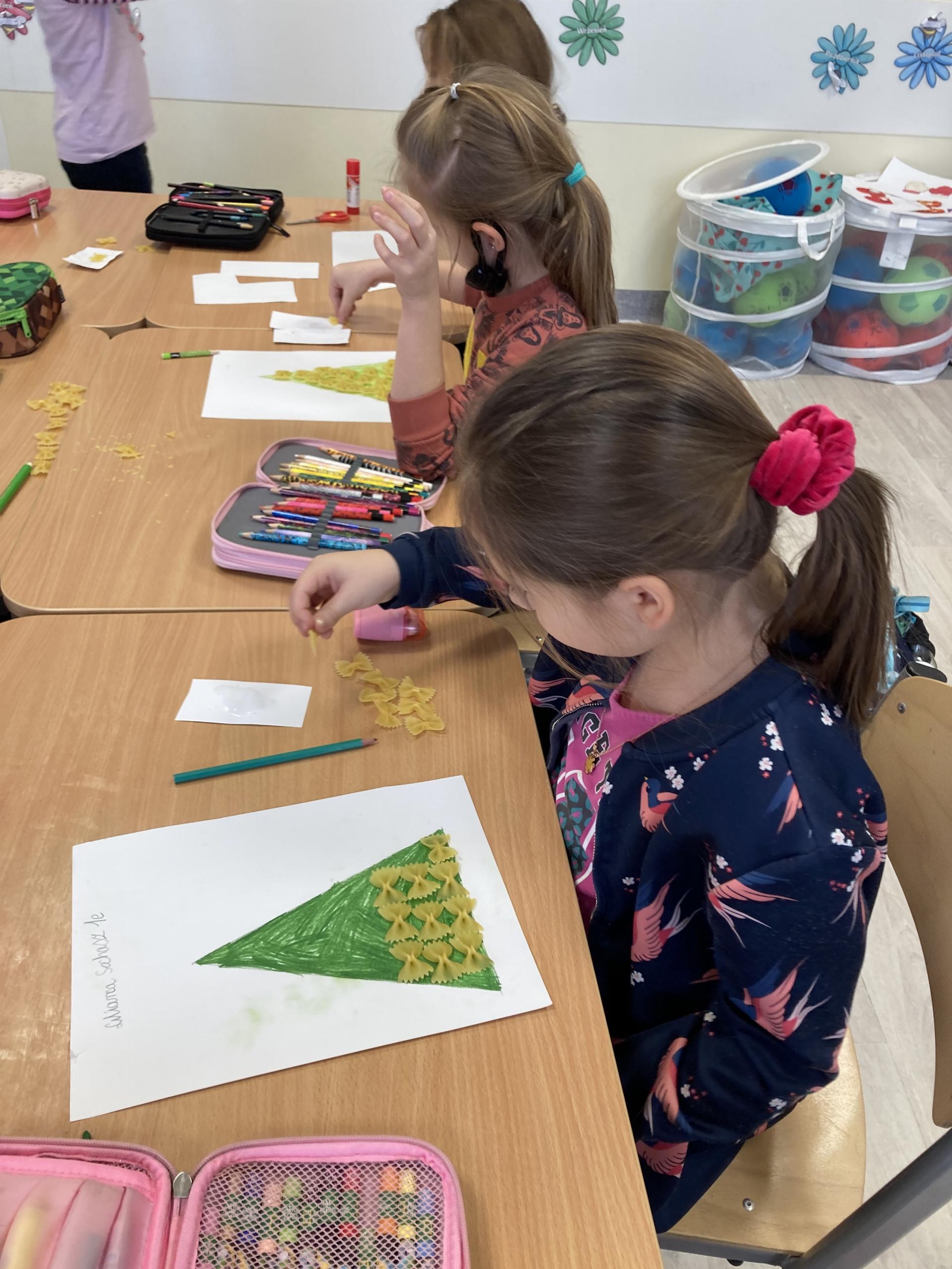 Na naszych warsztatach jak za dawnych lat tworzyliśmy piękne ptaszki z kolorowych papierów, bibułek, filcu, tasiemek, koralików i piórek. Uczniowie dekorowali choinki w salach klasowych: robili łańcuchy z bibuły, gwiazdy z papieru. Na oknach pojawiły się ręcznie wycinane gwiazdy, choinki i śnieg. Dużo radości i satysfakcji dały dzieciom warsztaty robienia papierowej choinki, włóczkowych skrzatów z czapeczkami jak również wykonywanie świątecznych kartek bożonarodzeniowych według własnych pomysłów, aniołków z masy solnej, pierniczków z masy porcelanowej, choinek makaronowych, stroików świątecznych. Piękne prace zachwycały każdego. Powstały przepiękne bombki, wianki, gwiazdki, mikołaje i inne. Niektórzy zainspirowani ludowymi pająkami ze słomy i bibuły utworzyli długi ozdobny łańcuch lub girlandę, która może być ciekawą, świąteczną dekoracją. Dzieci używały najróżniejszych materiałów. Bardzo przydatne okazały się wstążki, naklejki, cekiny, koraliki, łańcuszki i patyczki.