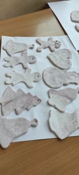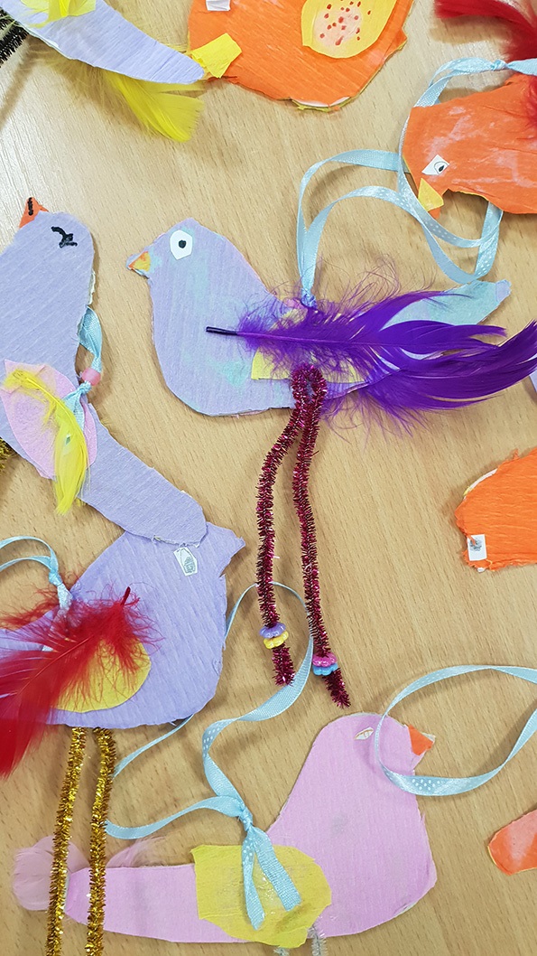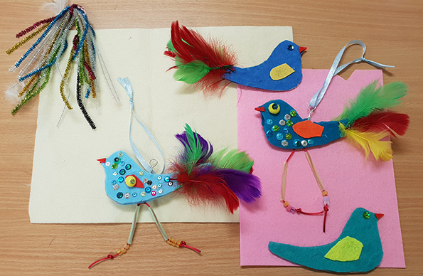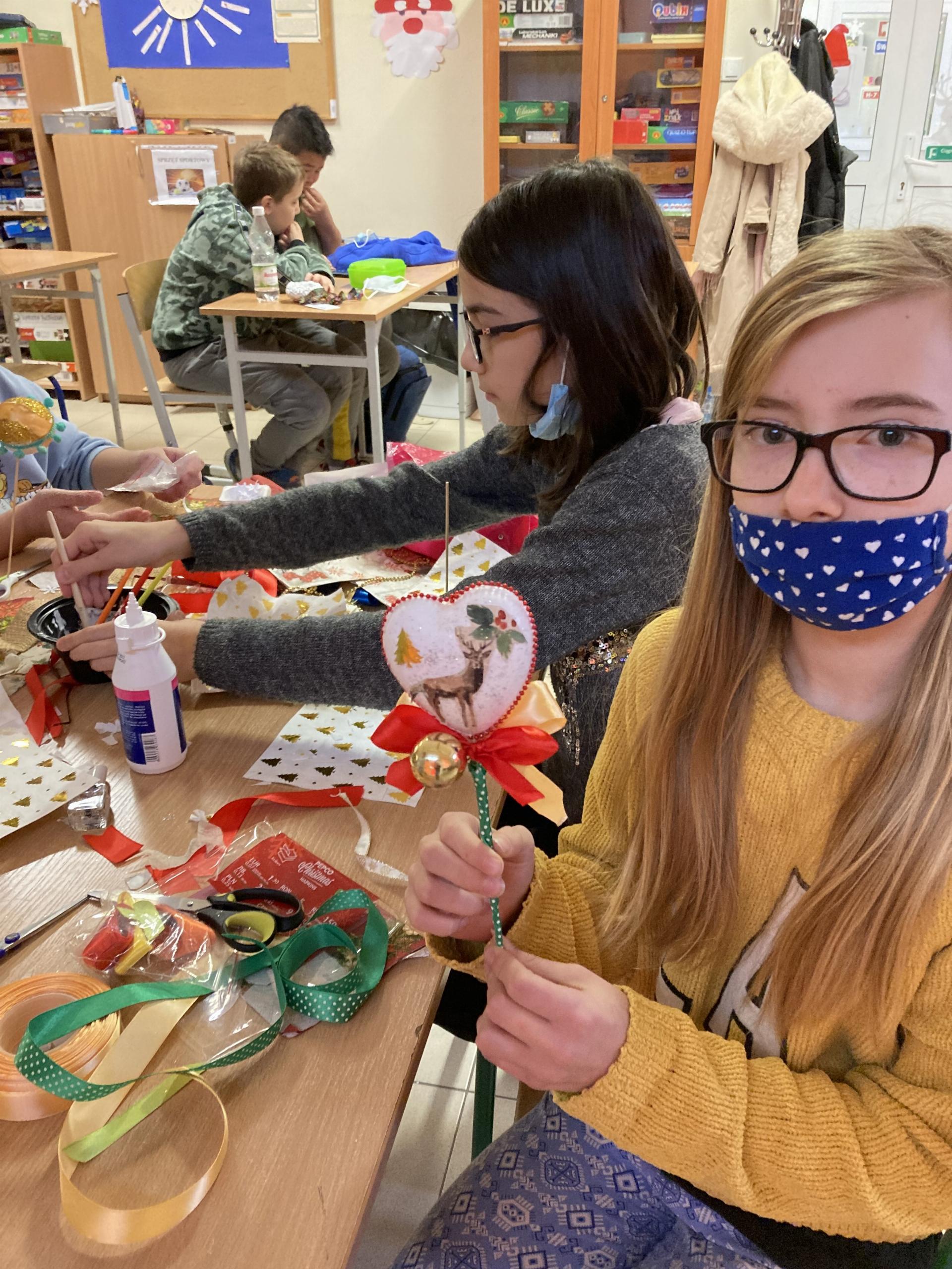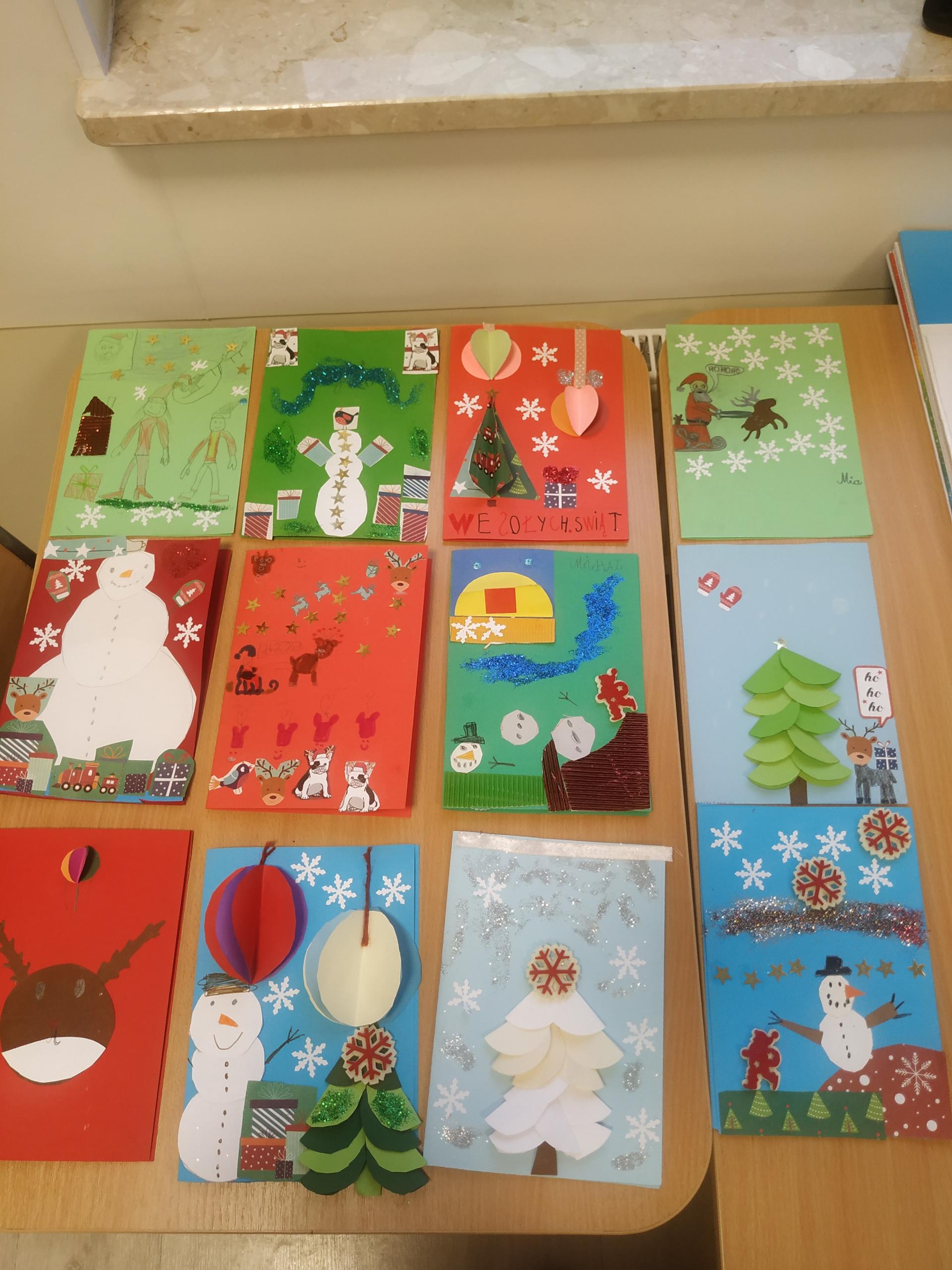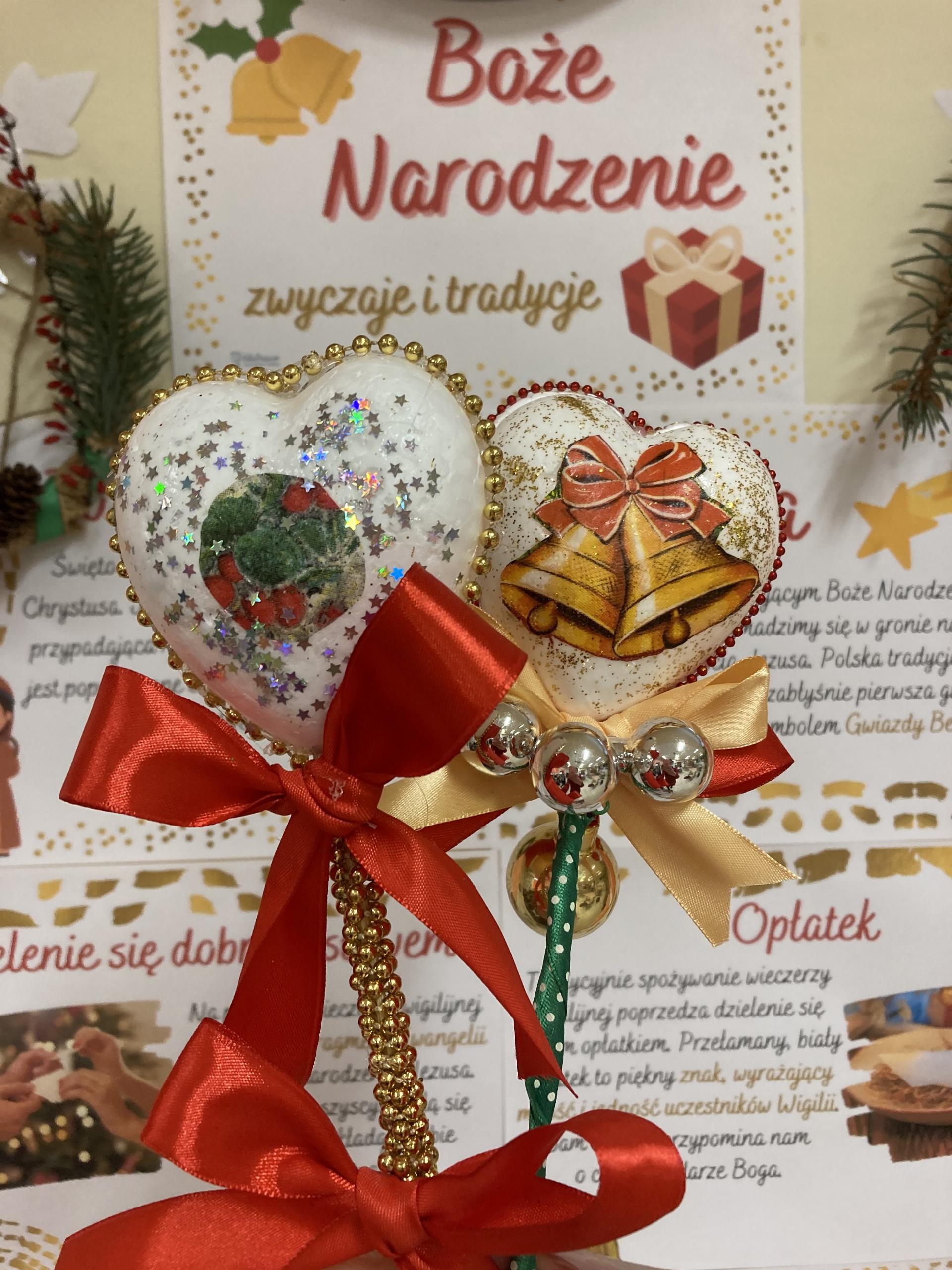 Na naszych warsztatach jak za dawnych lat tworzyliśmy piękne ptaszki z kolorowych papierów, bibułek, filcu, tasiemek, koralików i piórek. Uczniowie dekorowali choinki w salach klasowych: robili łańcuchy z bibuły, gwiazdy z papieru. Na oknach pojawiły się ręcznie wycinane gwiazdy, choinki i śnieg. Dużo radości i satysfakcji dały dzieciom warsztaty robienia papierowej choinki, włóczkowych skrzatów z czapeczkami jak również wykonywanie świątecznych kartek bożonarodzeniowych według własnych pomysłów, aniołków z masy solnej, pierniczków z masy porcelanowej, choinek makaronowych, stroików świątecznych. Piękne prace zachwycały każdego. Powstały przepiękne bombki, wianki, gwiazdki, mikołaje i inne. Niektórzy zainspirowani ludowymi pająkami ze słomy i bibuły utworzyli długi ozdobny łańcuch lub girlandę, która może być ciekawą, świąteczną dekoracją. Dzieci używały najróżniejszych materiałów. Bardzo przydatne okazały się wstążki, naklejki, cekiny, koraliki, łańcuszki i patyczki.