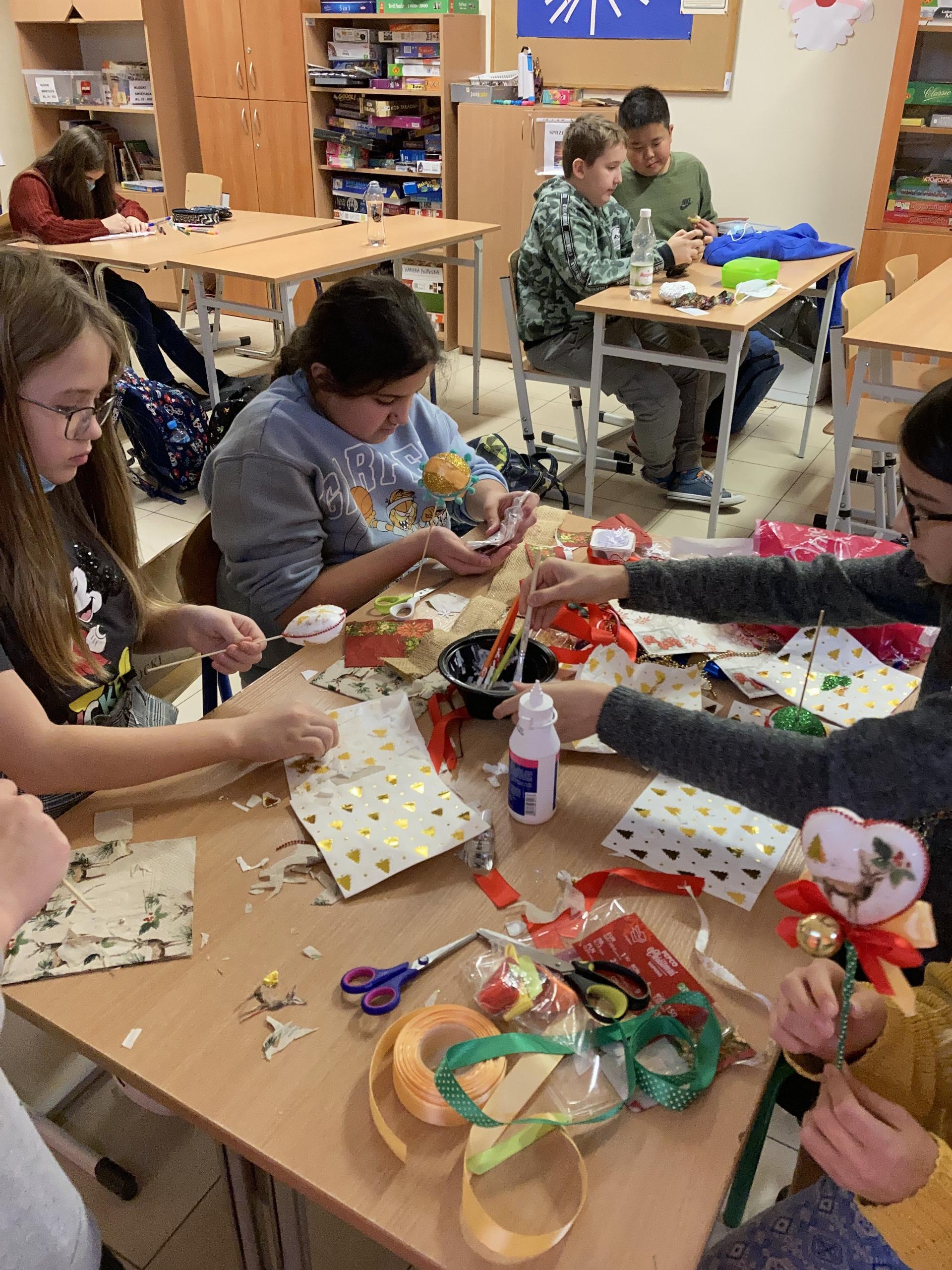 W ramach Międzynarodowego Projektu Edukacyjnego „Z kulturą mi do twarzy” odbyły się Warsztaty ludowe. Uczniowie świetlicy wykonywali tradycyjne ozdoby bożonarodzeniowe.