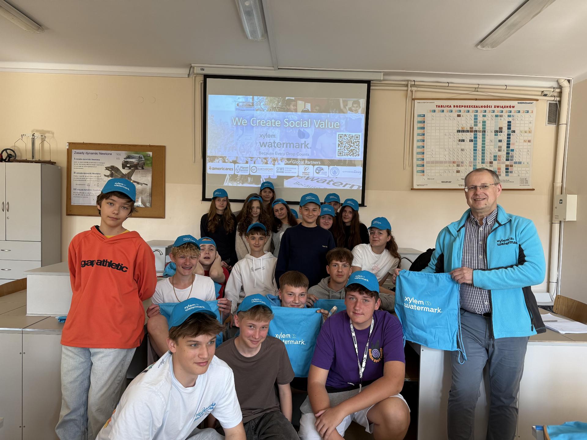 Podczas spotkania prowadzący przedstawił prezentację dotyczącą znaczenia wody w życiu człowieka i naszej planety. Fundacja WATERMARK, dla której w ramach wolontariatu działają pracownicy koncernu XYLEM, ma za zadanie uświadamianie społecznościom lokalnym, jak ważne jest dbanie o zasoby wodne naszej planety, gdyż z uwagi na zanieczyszczenia i zmiany klimatyczne, ludzkość ma coraz mniejszy dostęp do wody pitnej.